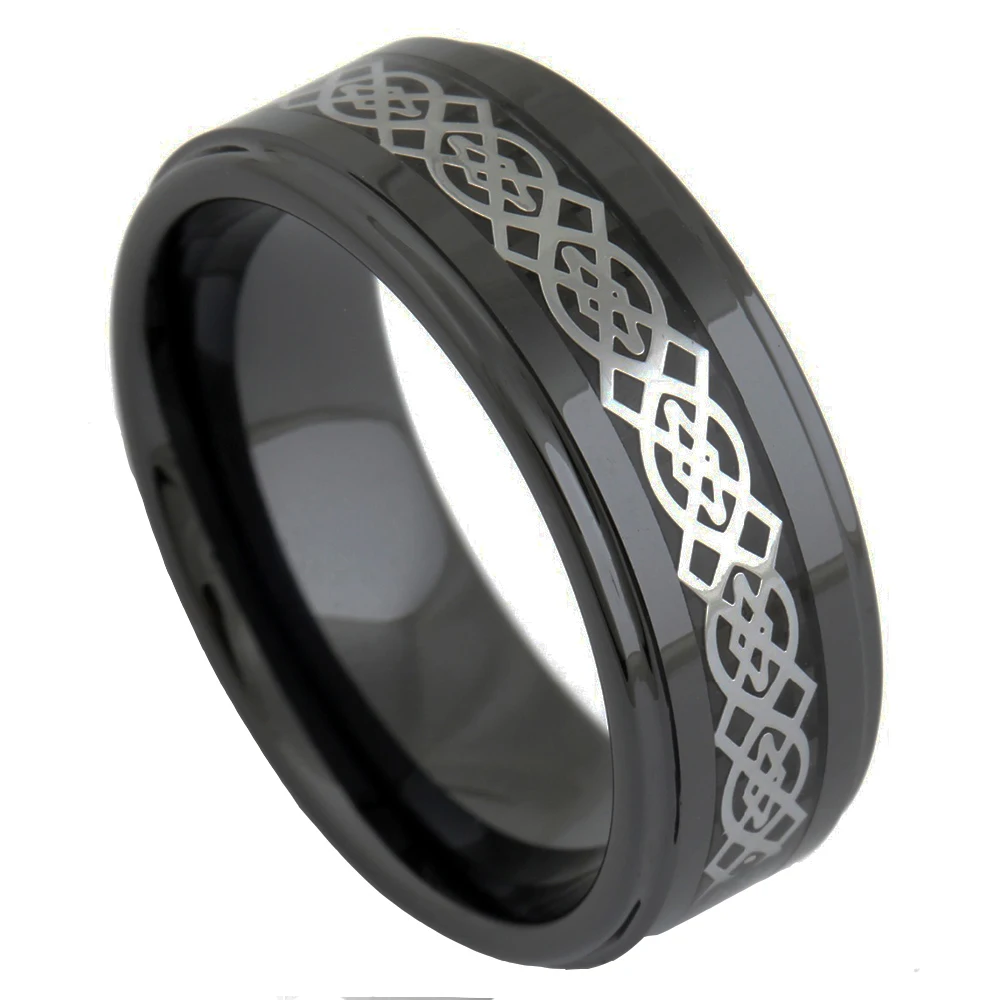 Керамическое кольцо Eamti, 8 мм, для мужчин и женщин, серебристого цвета, с высокой полировкой, кельтский узел, обручальное кольцо, женские кольца, удобные ювелирные изделия