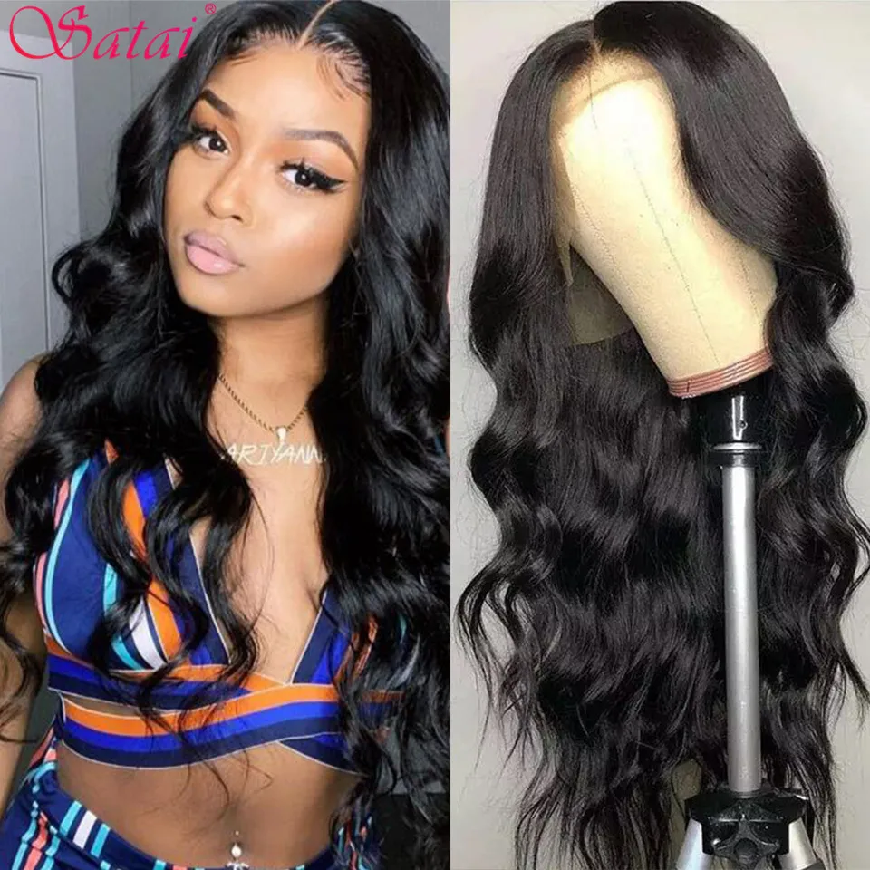 Satai объемная волна кружева парик часть синтетические волосы парики из натуральных волос на кружевной перуанский объемная волна Синтетические волосы на кружеве парик 180 плотность Синтетические волосы на кружеве парики из натуральных волос