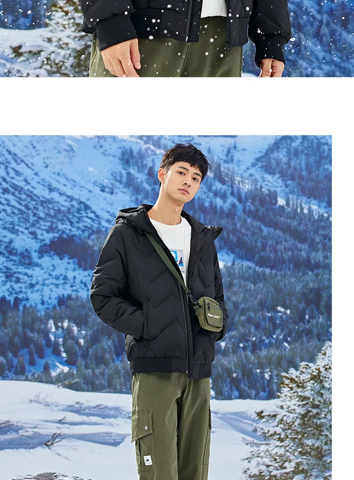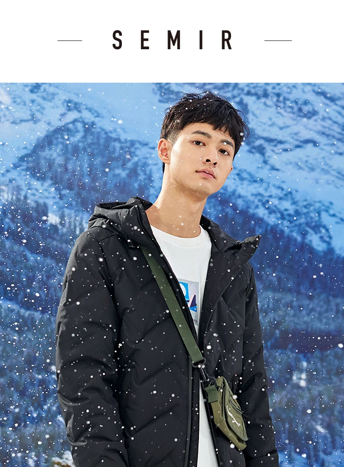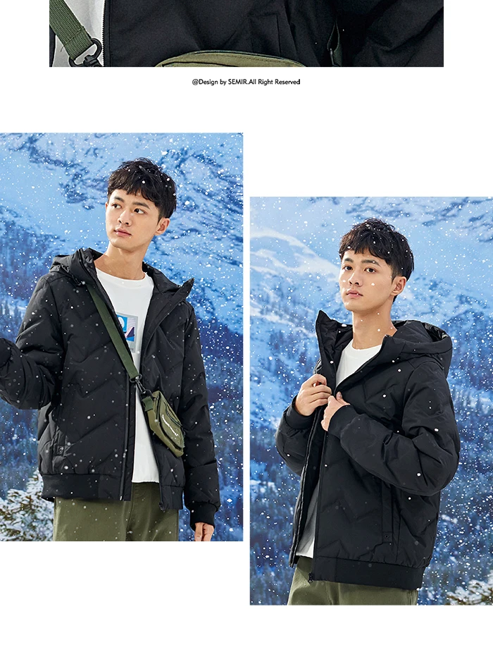 Пуховик SEMIR мужской короткий с капюшоном, утепленный Черный пуховик в Корейском стиле, зимняя утепленная куртка
