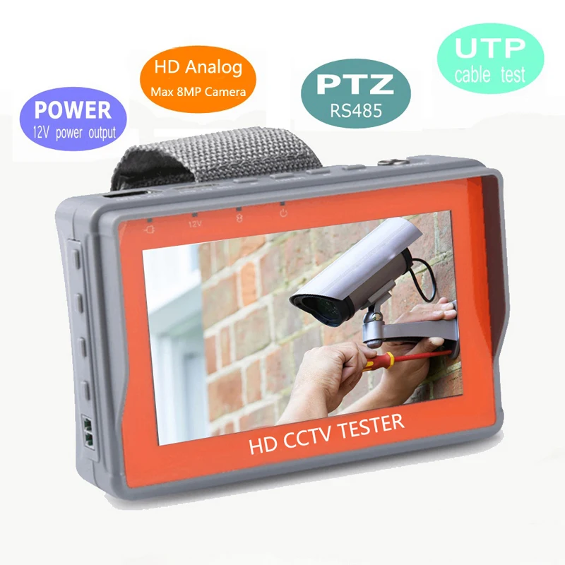 I5V-8MP, а,5 дюймовРазрешение экрана b,HD800*480C, поддержка8 Мп AHD + TVI + CVI/CVBSТестер Видео d,UTC(HD коаксиальный контроль, BNC коаксиальный контроль PTZ, но не может вызвать информацию о меню камеры) и функции RS485 и UTP