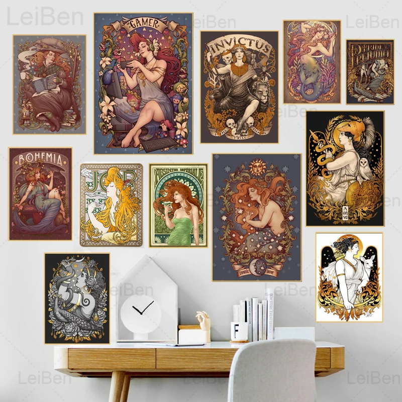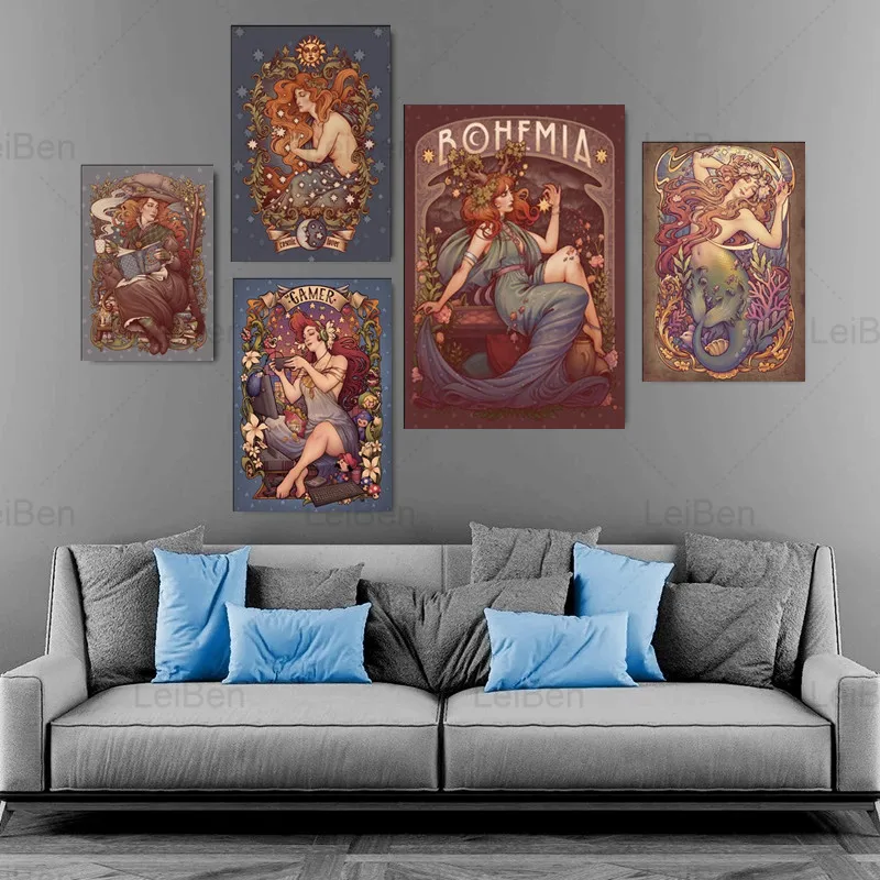 Мультяшные Ретро постеры и принты русалки Скандинавская абстрактная девушка настенная Картина на холсте Модульная картина домашний Декор Гостиная