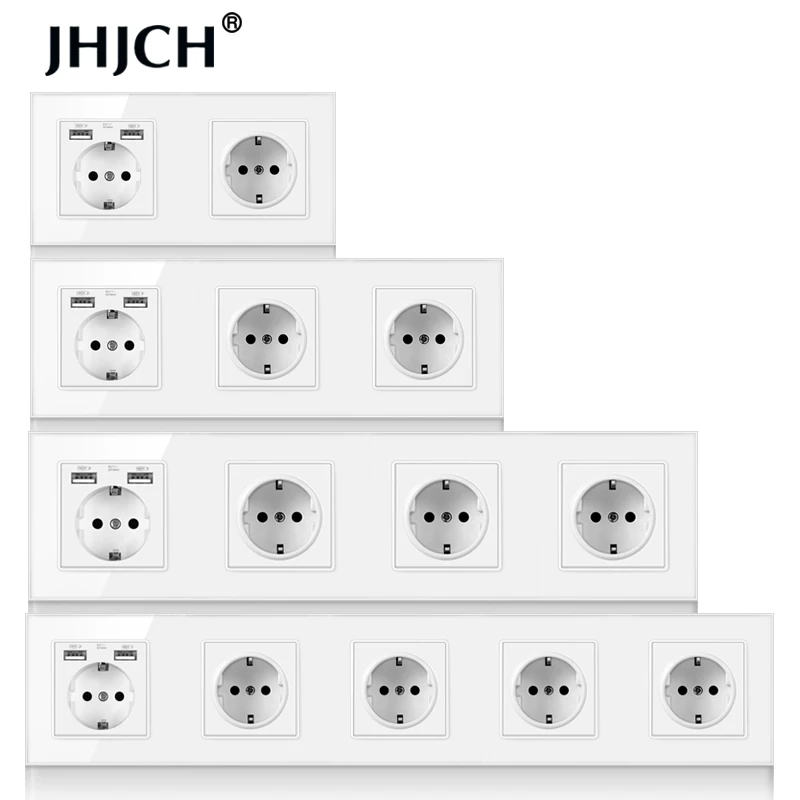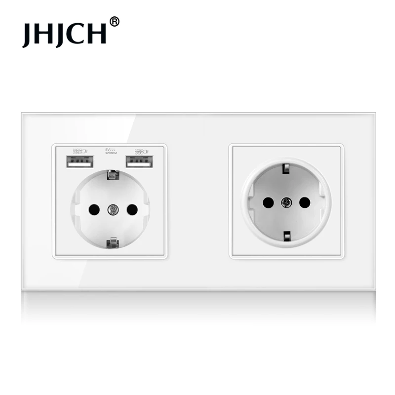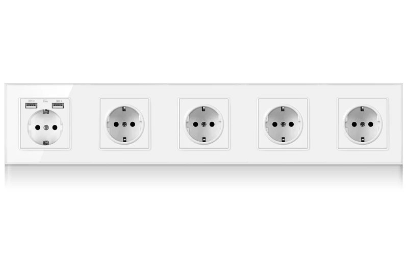 Европейский союз Германия настенная розетка из прозрачного стекла белая панель с тремя заземленными вилками, тройная розетка питания 16А