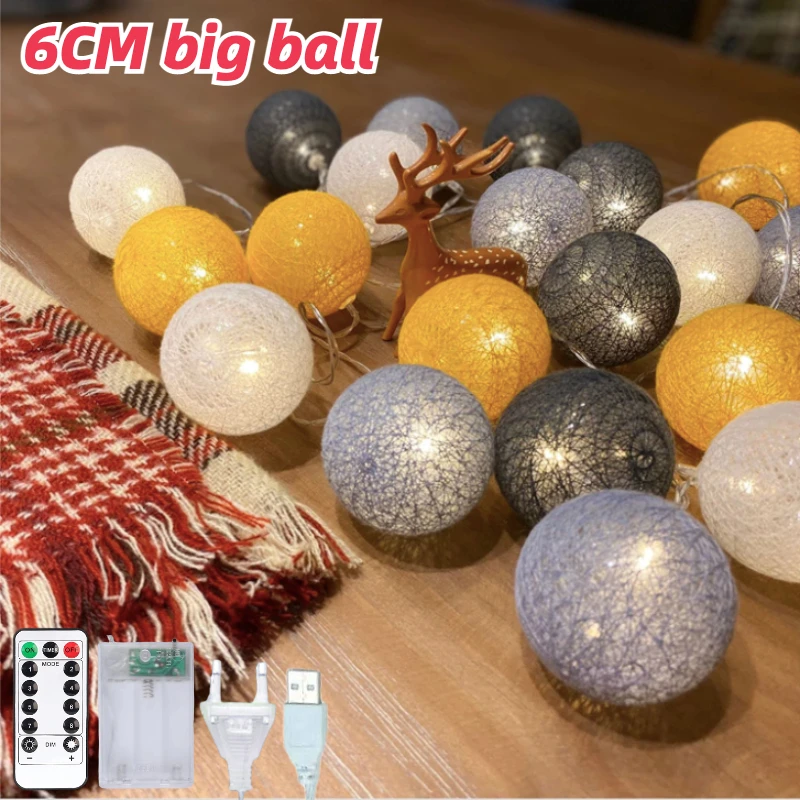 Светодиодная гирлянда с хлопковыми шариками, украшение для спальни, Рождества, свадьбы, улицы, сада, вечеринки, детской комнаты, кровати, 6 см