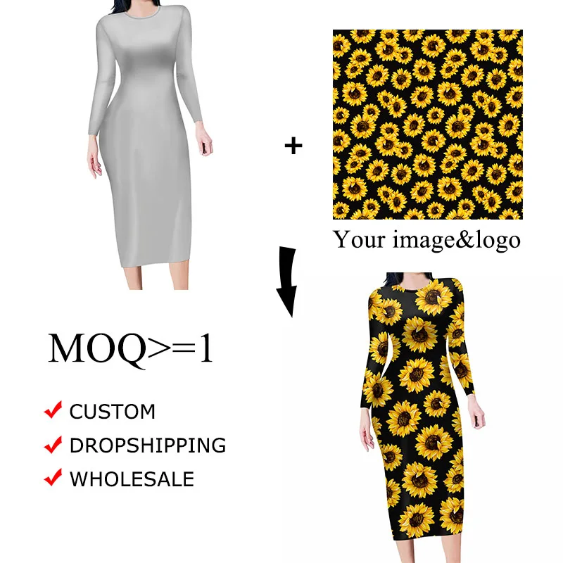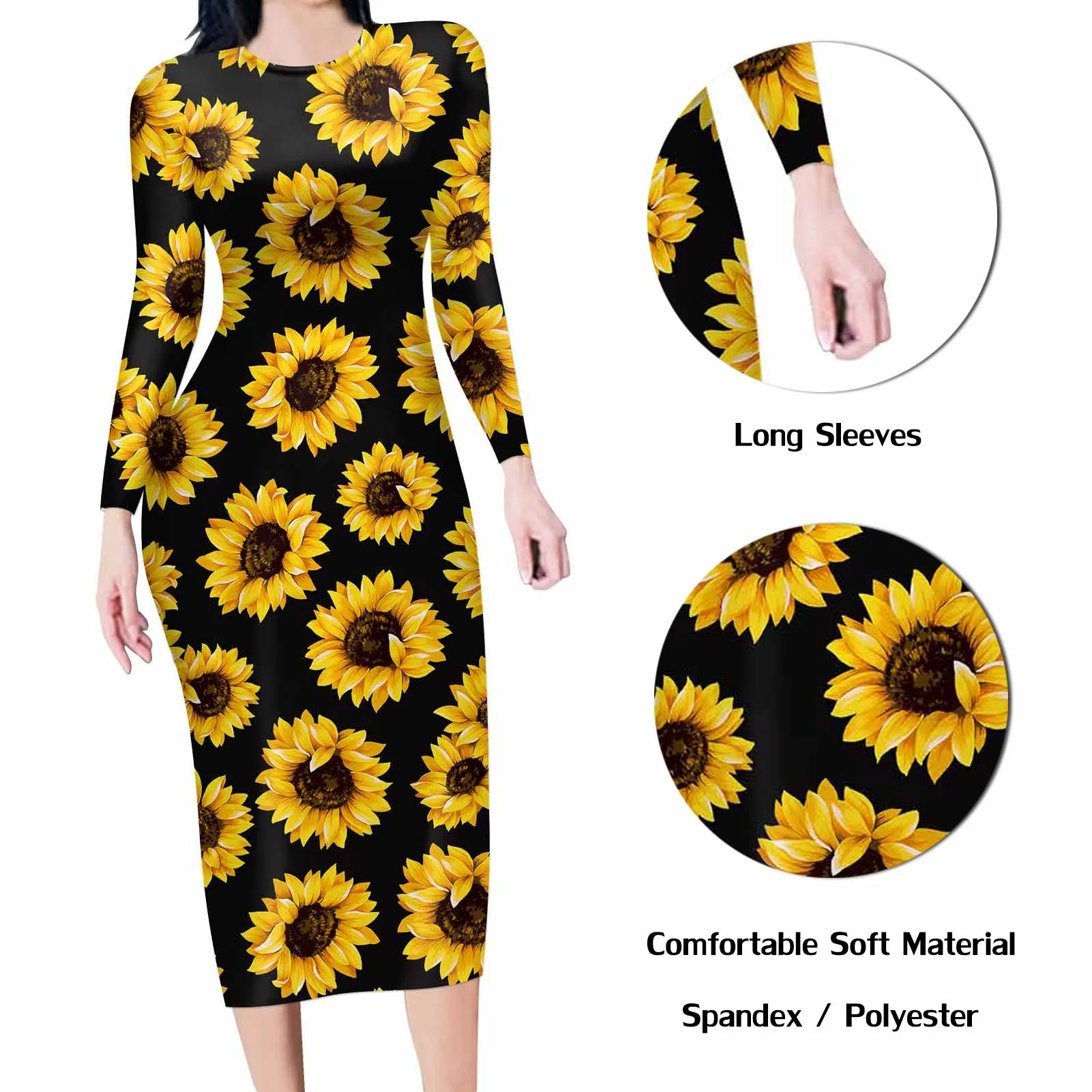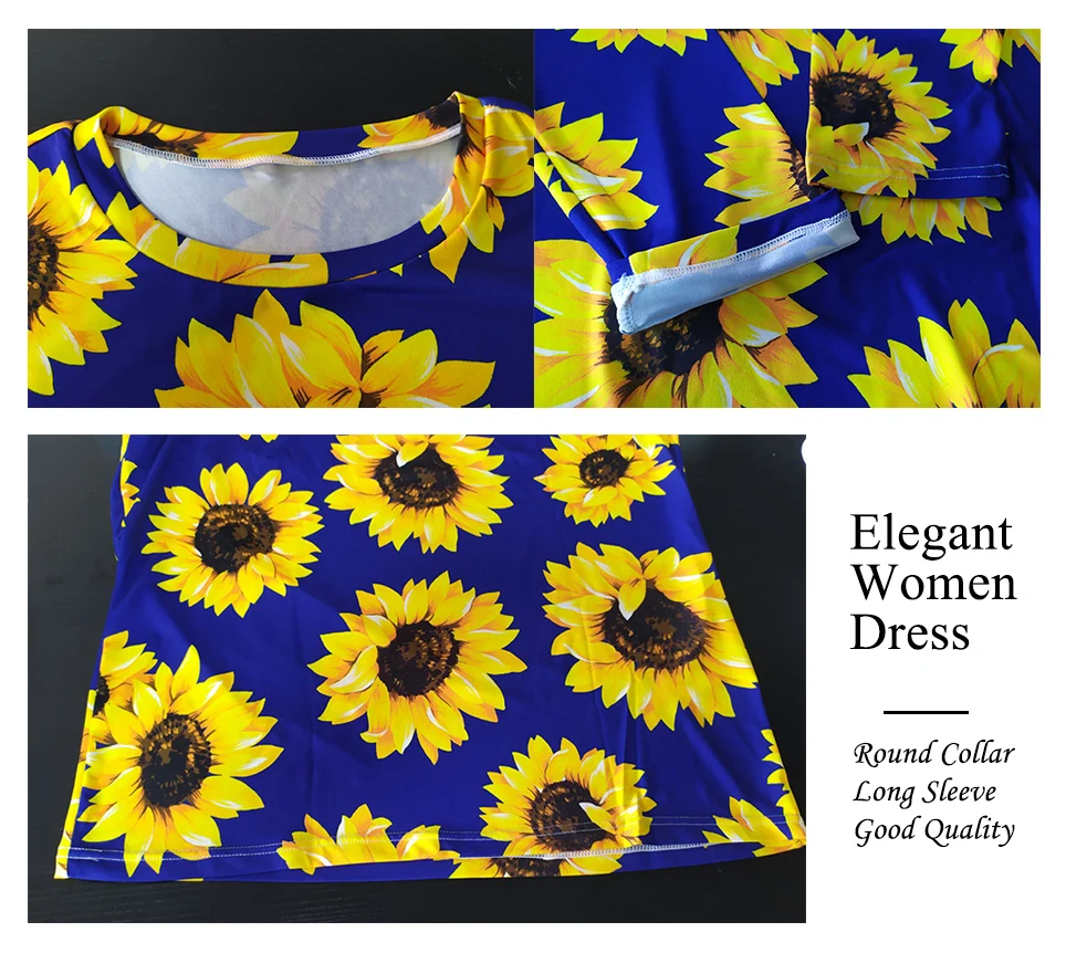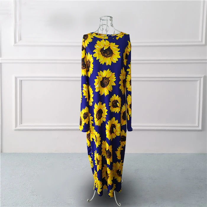 Женское платье с цветочным принтом, круглым вырезом и длинным рукавом