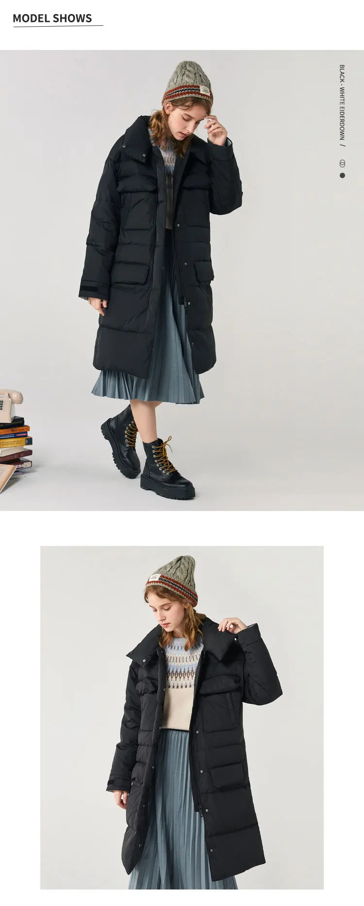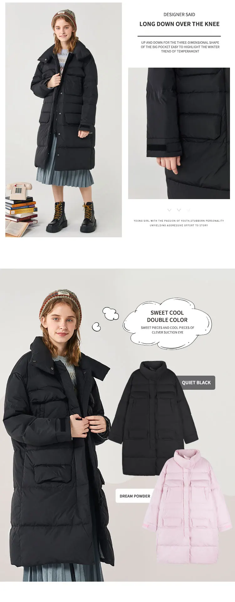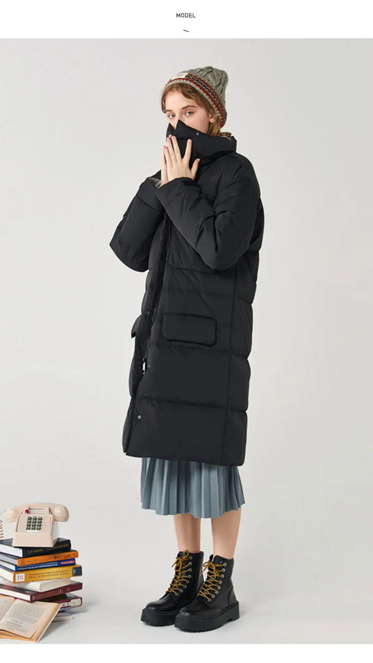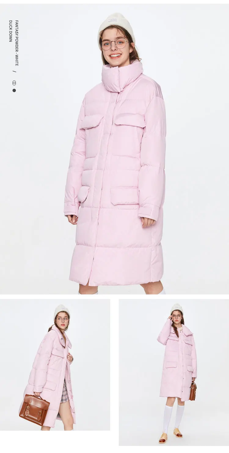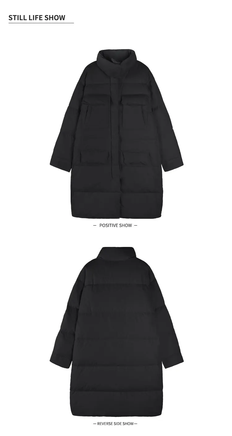 Пуховик женский зимний длинный, выше колена, с воротником-стойкой