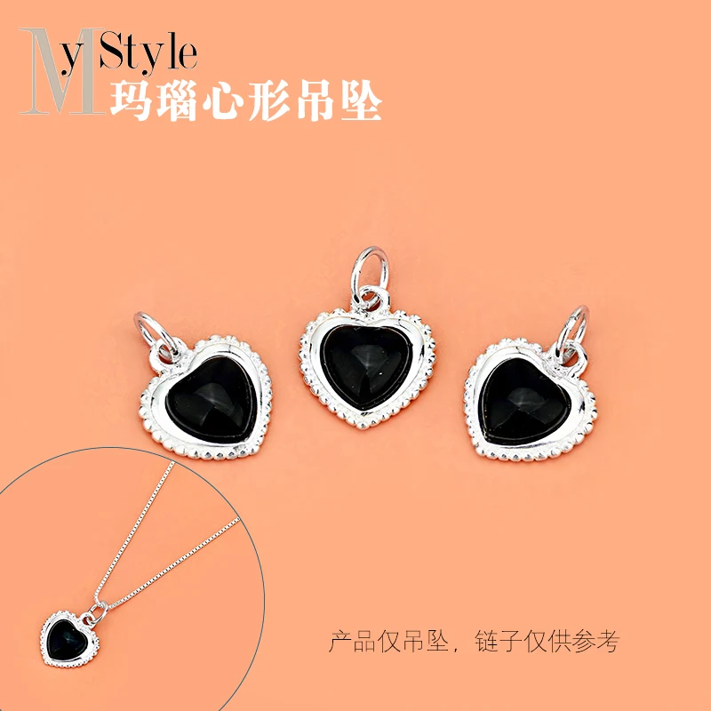 Японские корейские аксессуары черный агат сердце любовь кулон 925 серебряные ювелирные изделия DIY бисерный материал аксессуары