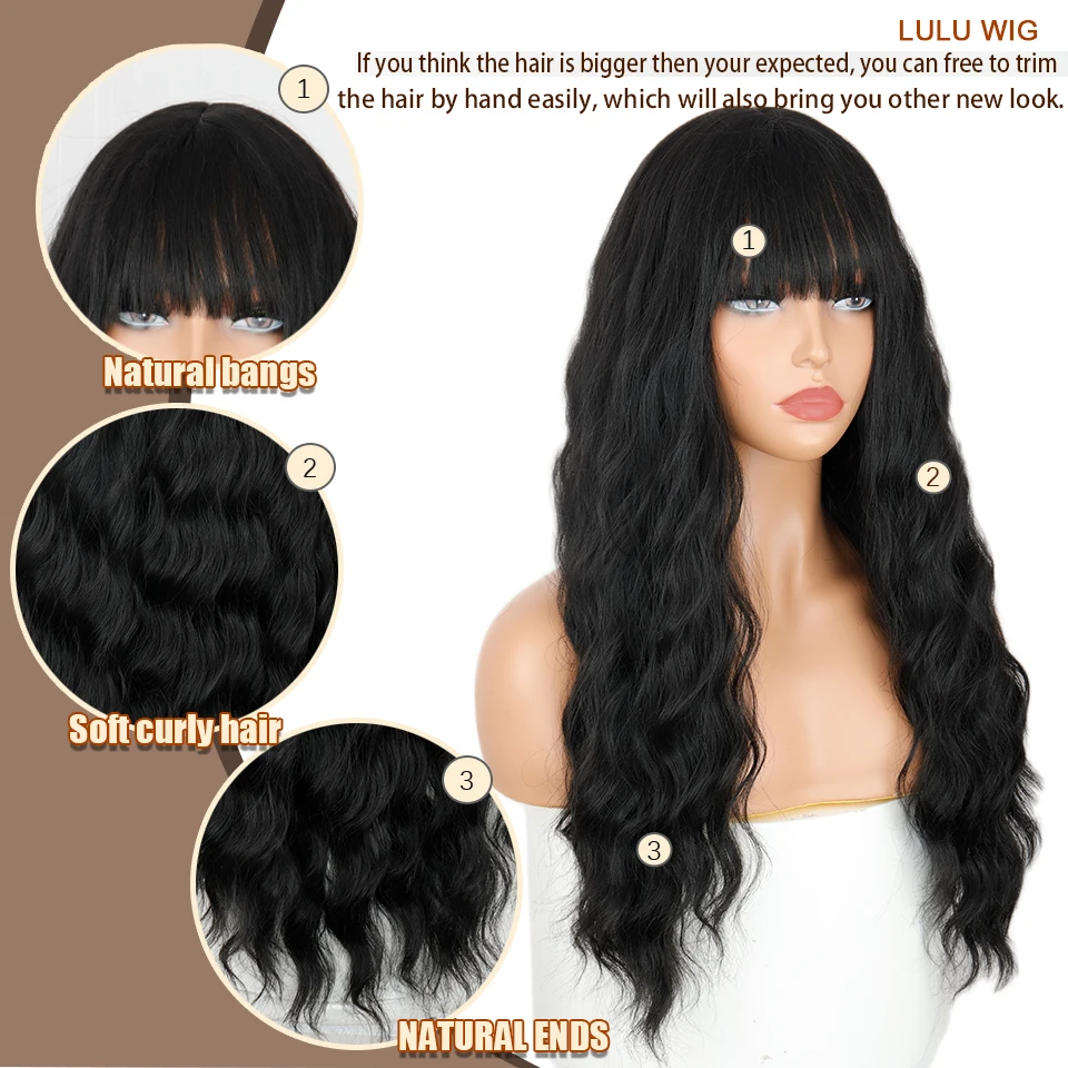 Красивые длинные волнистые черные парики, цветные парики для косплея, натуральные черные парики для женщин