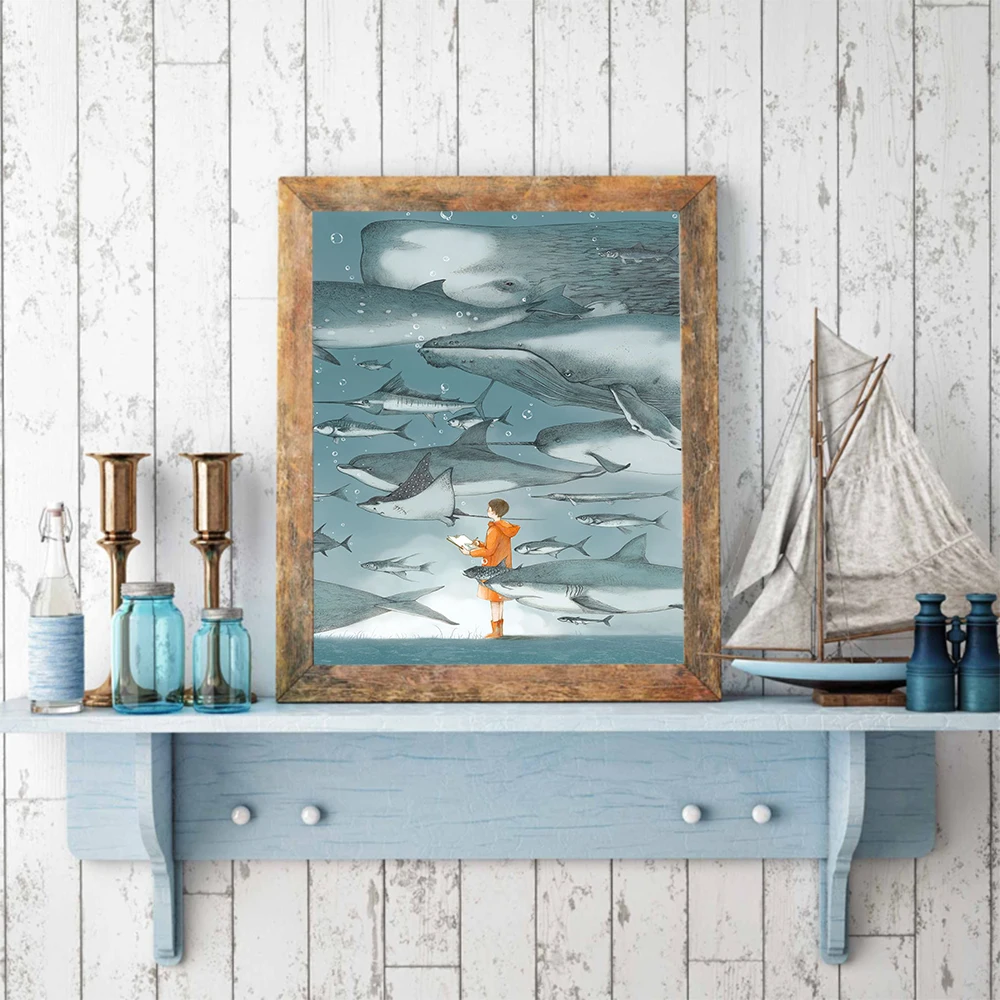 Модный Рисунок Кита, модный плакат на холсте, настенная живопись, картины, украшение для дома, ванной, Настенный декор