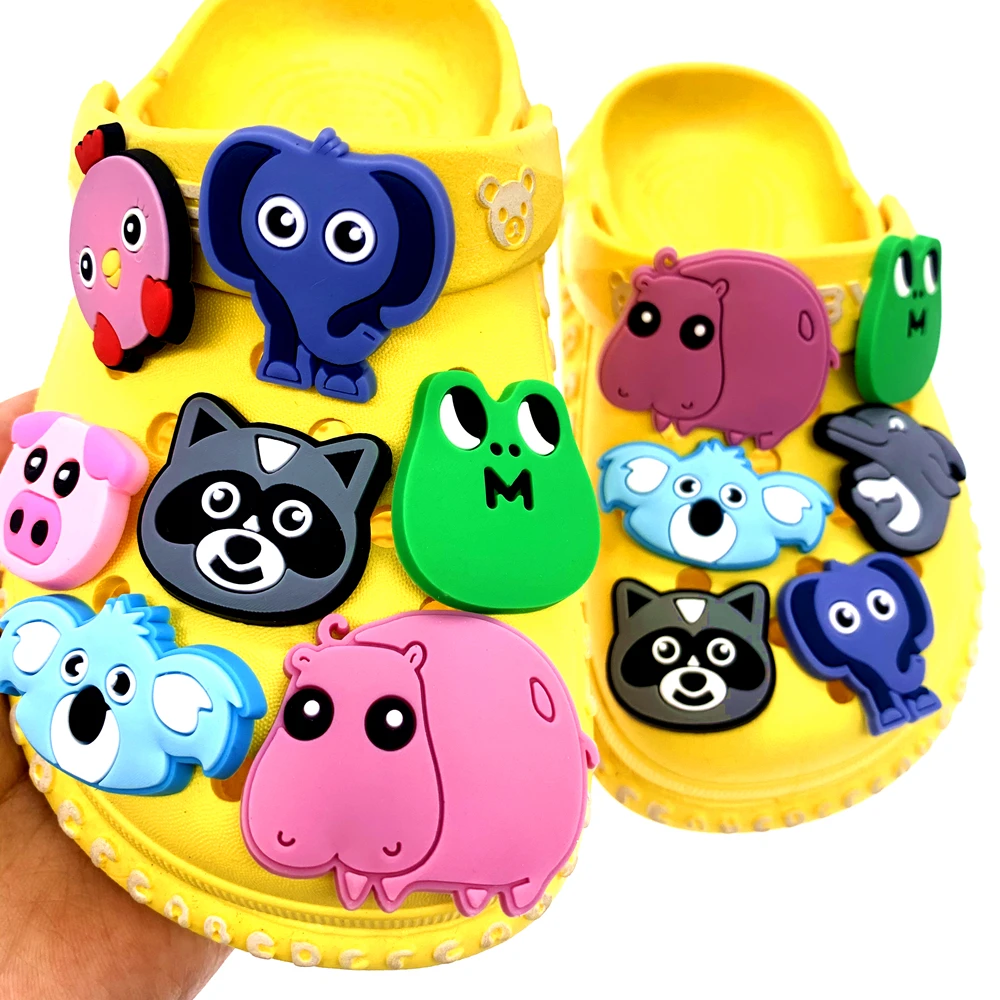 50 шт. оптовая продажа смешанных мультяшных талисманов для обуви в стиле хиппота, слона, иконы, Кроксы, аксессуары сделай сам, браслет, рюкзак, украшение из ПВХ