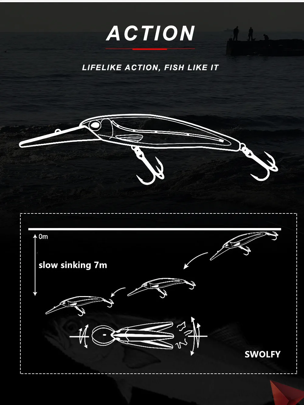 NOEBY 3 шт. 14 см 52 г 16 см 73 г медленно тонущие Троллинговые искусственные приманки для морской рыбалки
