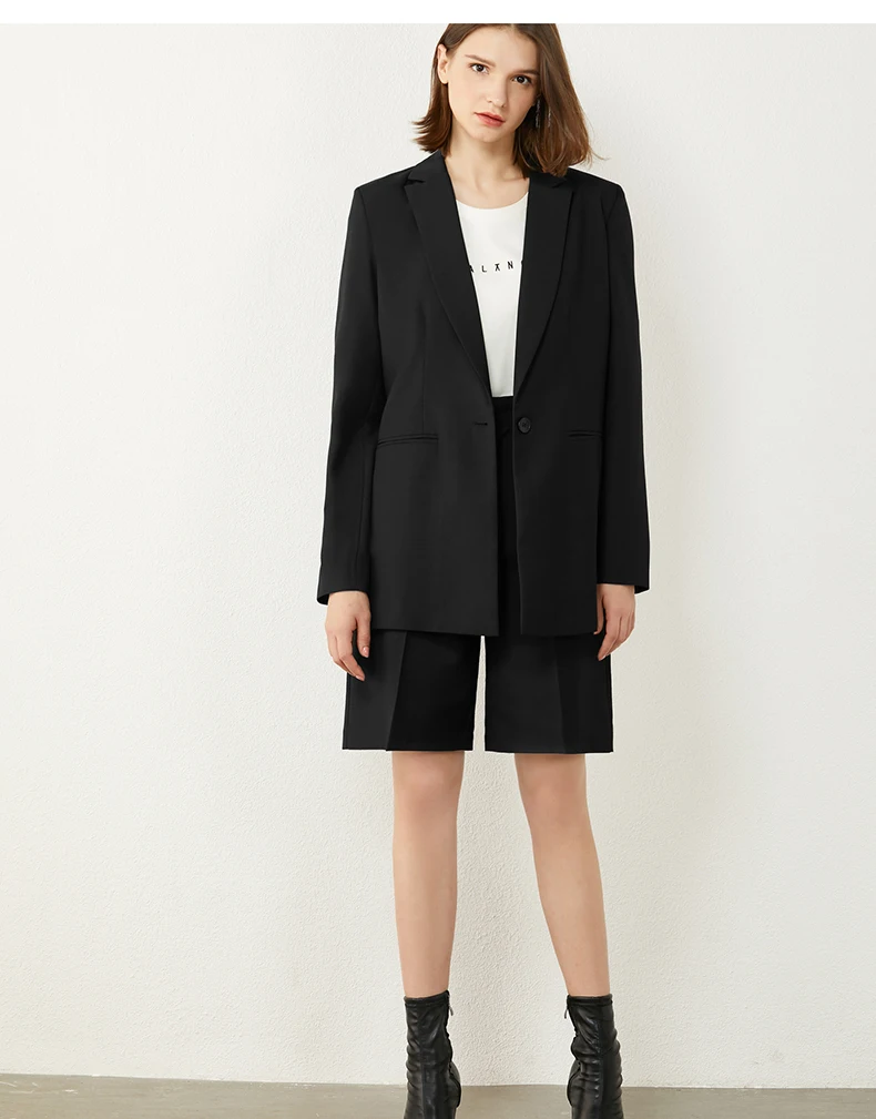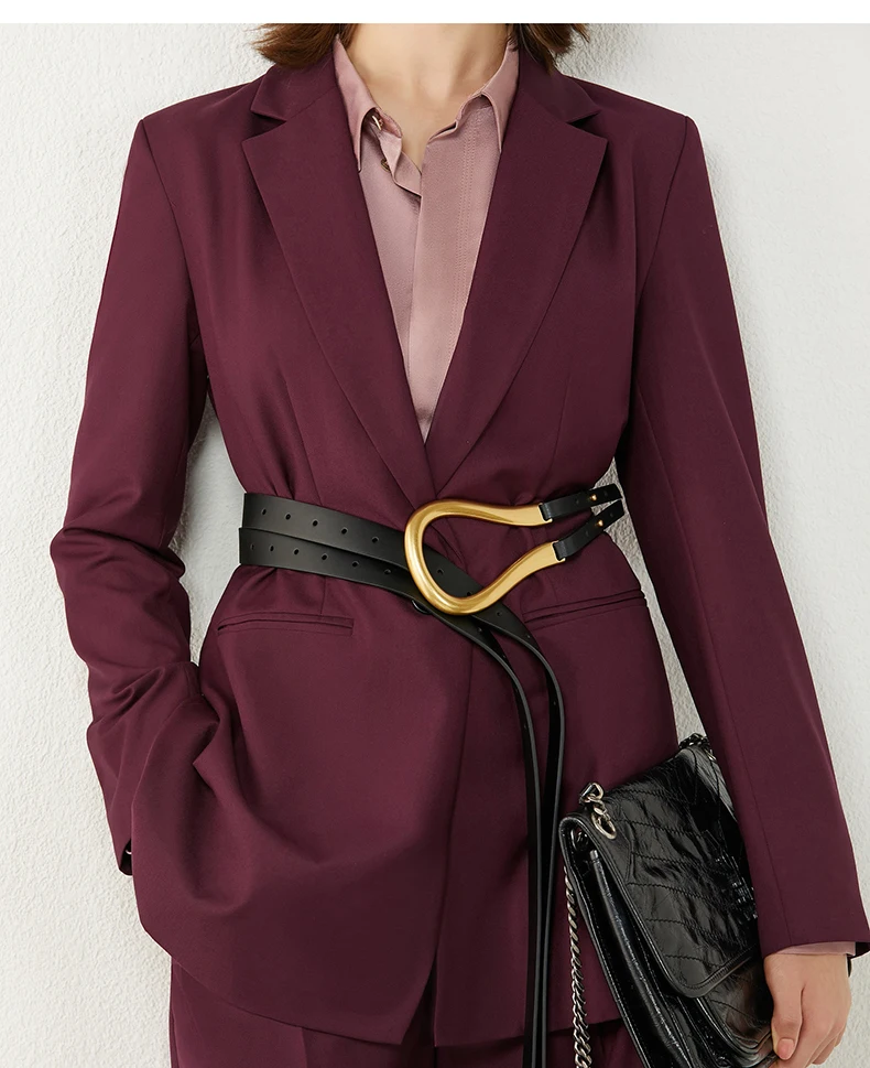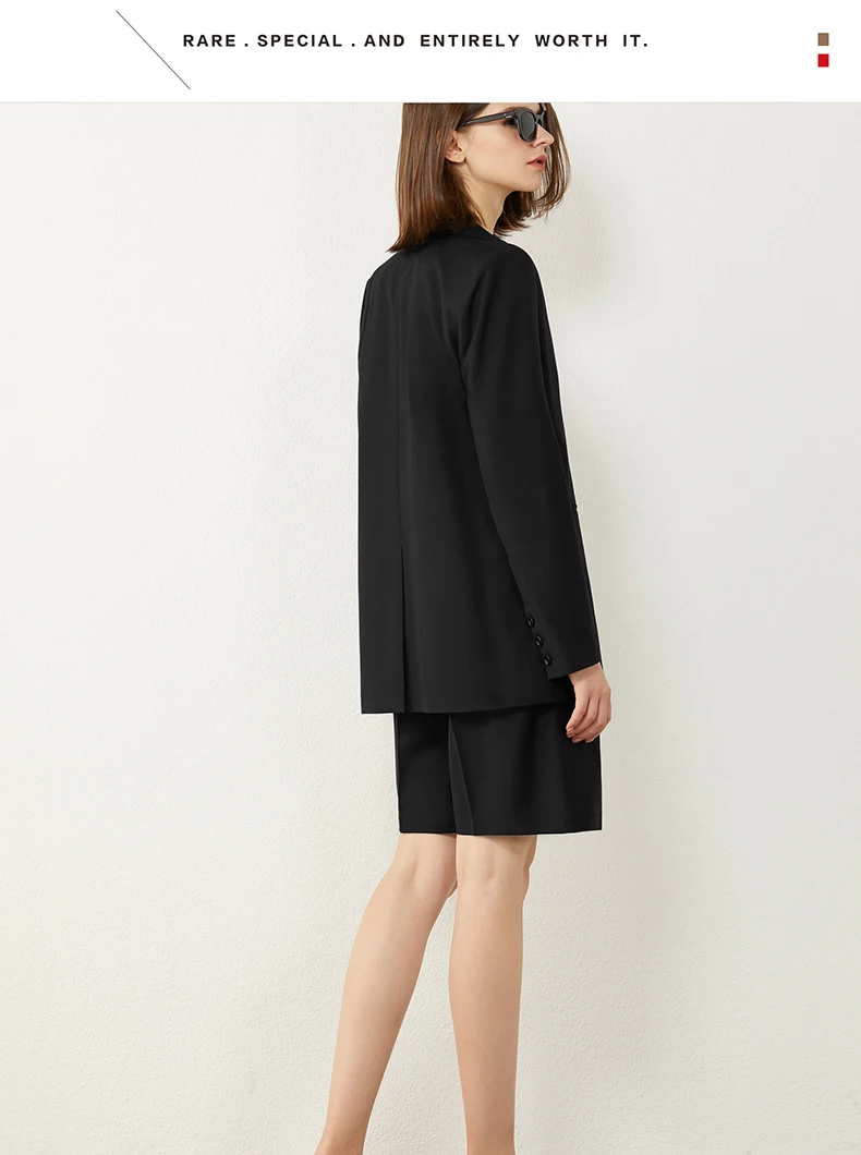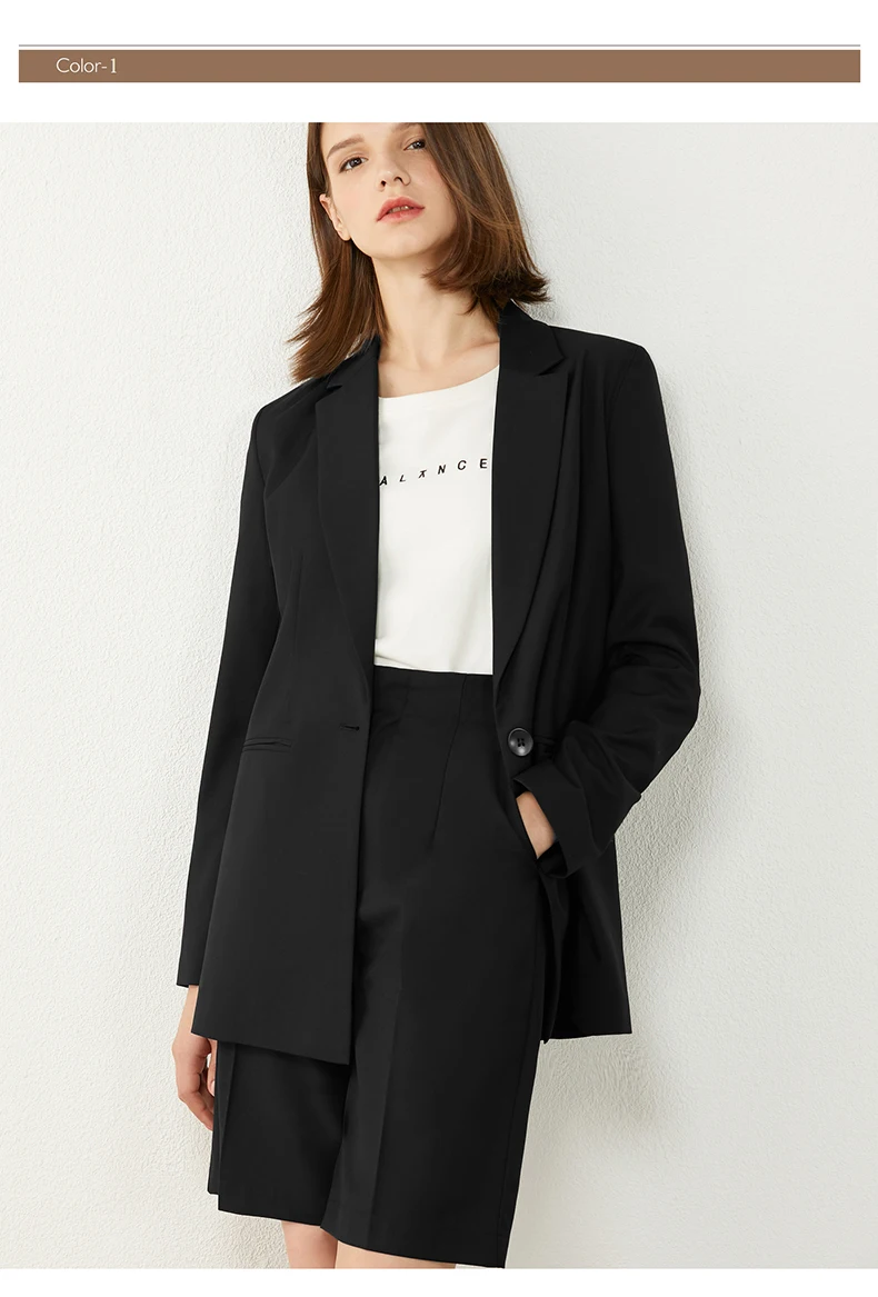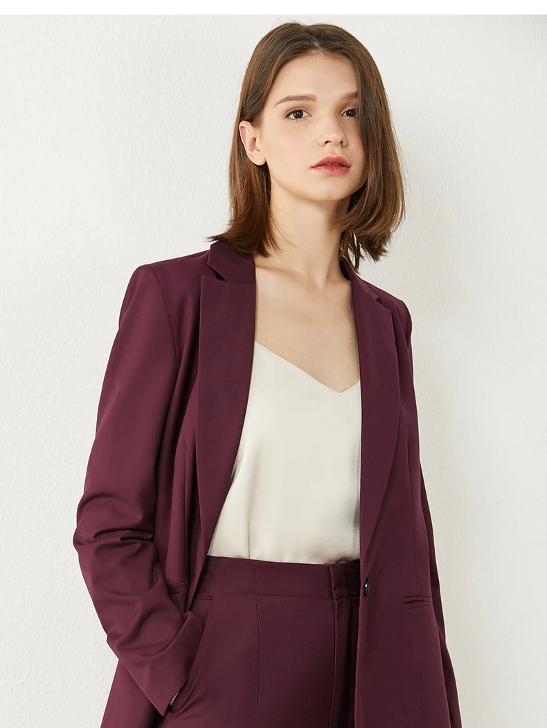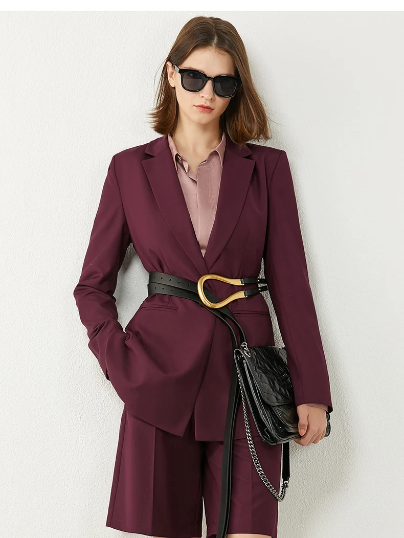 Костюм женский весенне-осенний однотонный с лацканами и высокой талией, 12040349