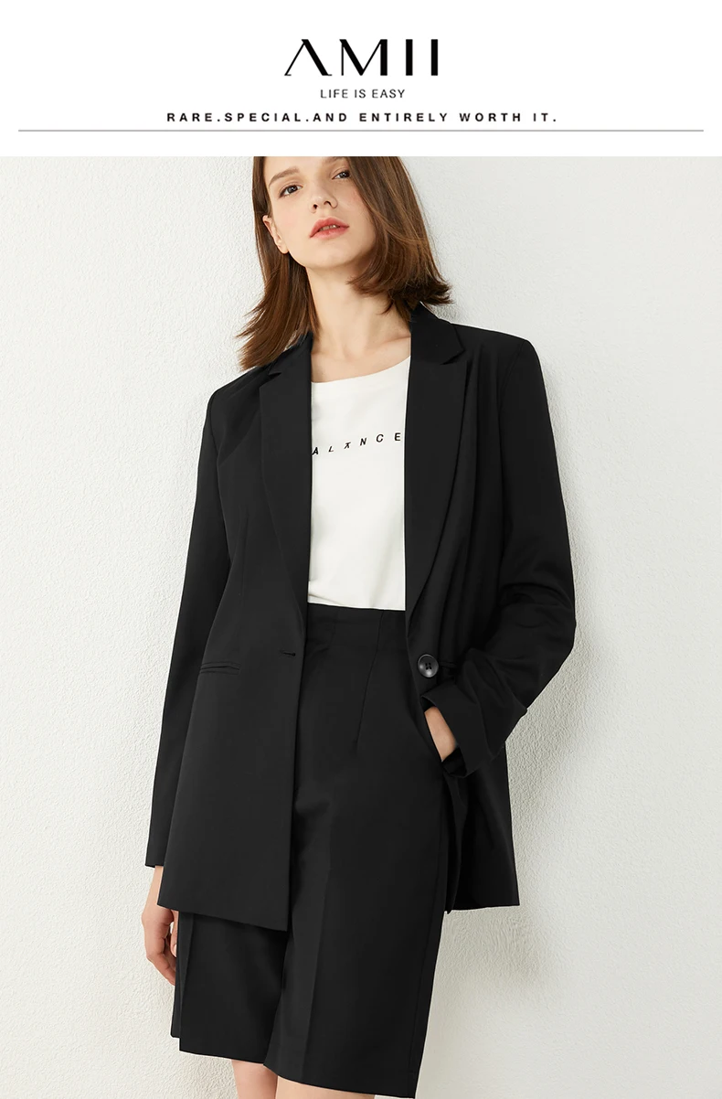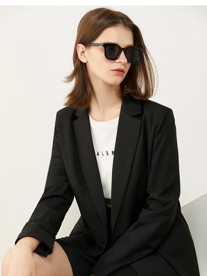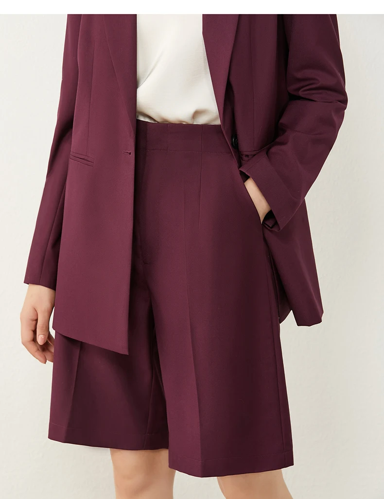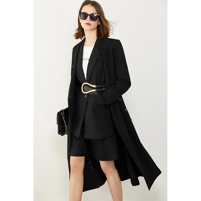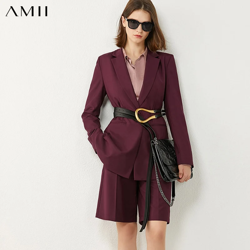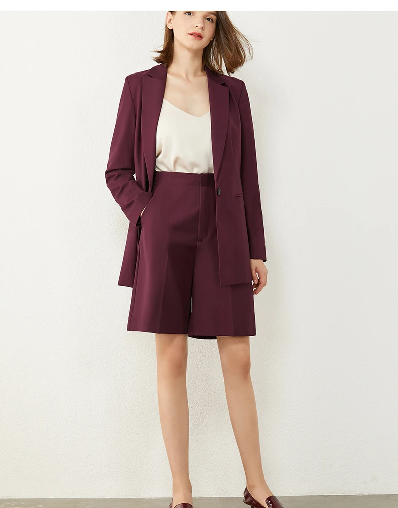 Костюм женский весенне-осенний однотонный с лацканами и высокой талией, 12040349