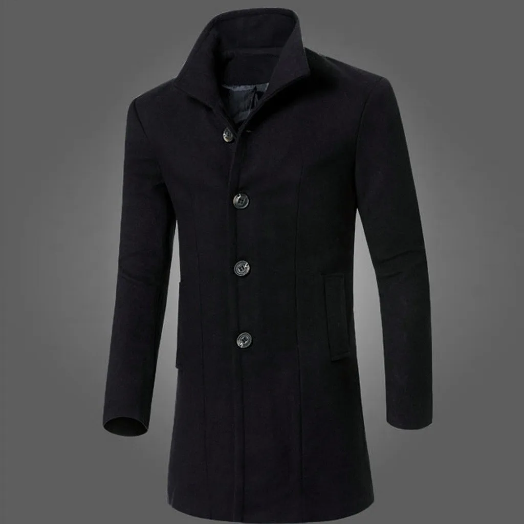 Мужская куртка, теплый зимний Тренч, Длинная Верхняя одежда на пуговицах, умное пальто