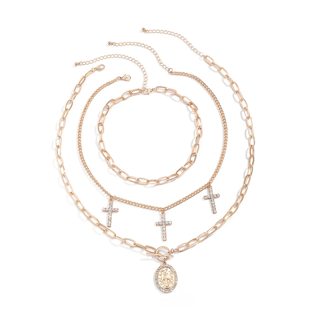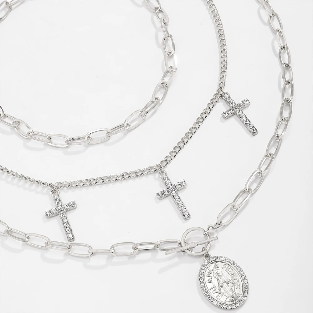 Новинка 2020, многослойная модная цепочка с круглой подвеской Богородицы для женщин, женский хрустальный крест ожерелье, Подарочная бижутерия