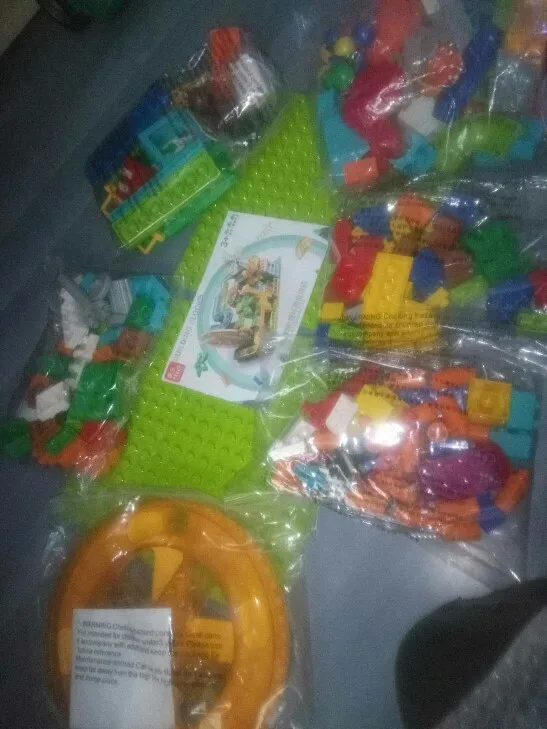 Блоки подходят очень хорошо, он поставляется с плоским для строительства. Цифры милые. У него нет коробки, но он завернут в пузырчатую пленку