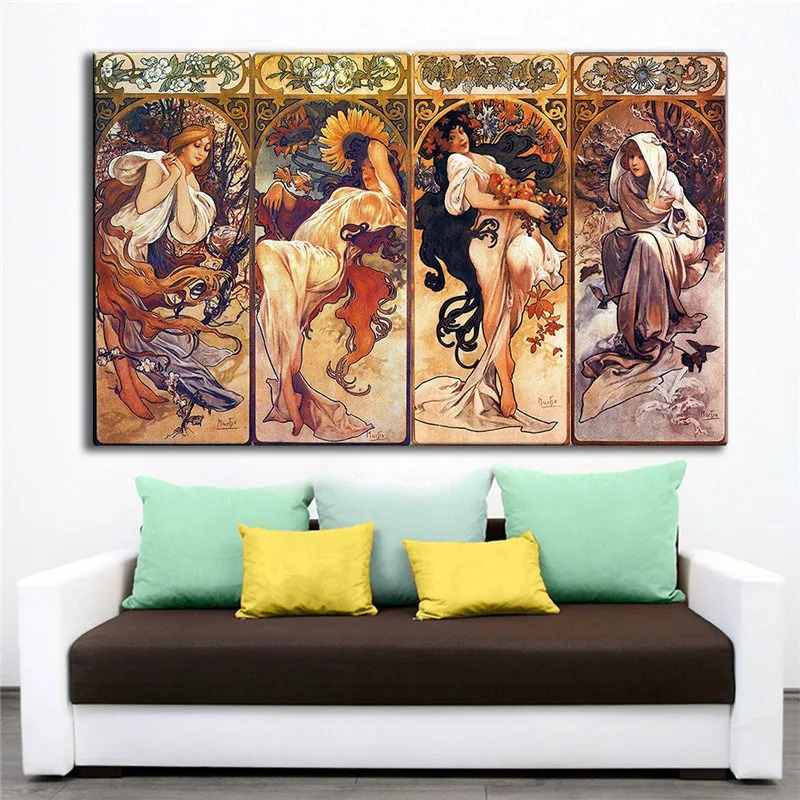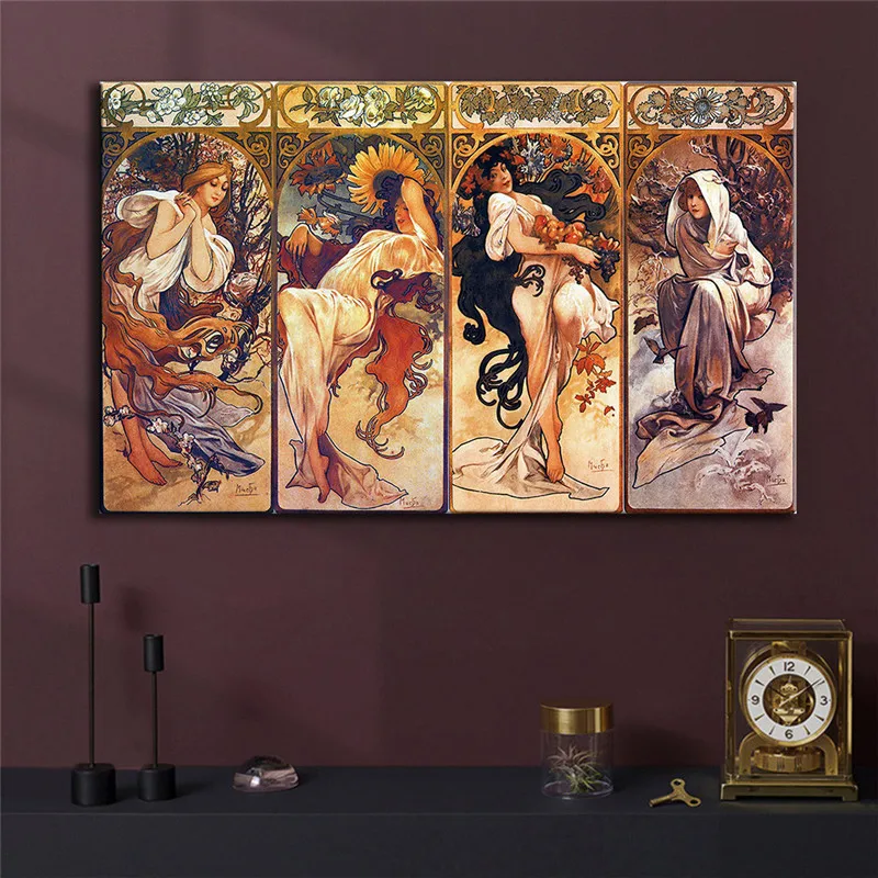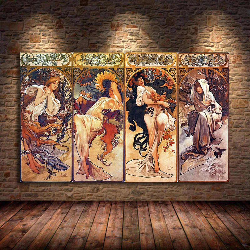 Винтажные плакаты и принты Alphonse Fly Times of Day, женские художественные картины на холсте, настенные художественные картины для гостиной