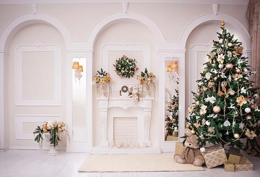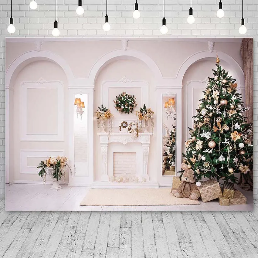 Фон для фотосъемки с рождественской елкой Avezano, зимняя гирлянда, камин, декор для фотостудии
