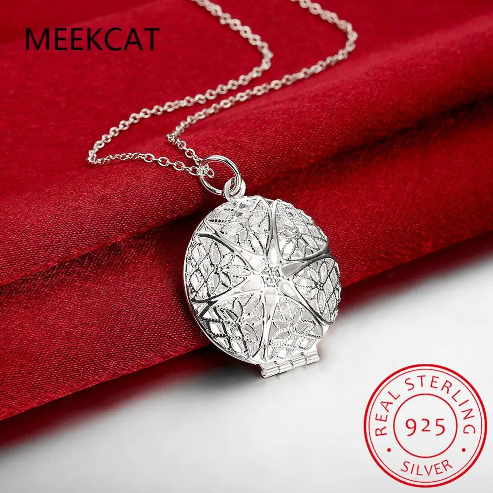 Круглый Кулон-фоторамка MEEKCAT из стерлингового серебра 925 пробы, ожерелье 18 дюймов, цепочка под змею для женщин, свадебные ювелирные изделия для помолвки