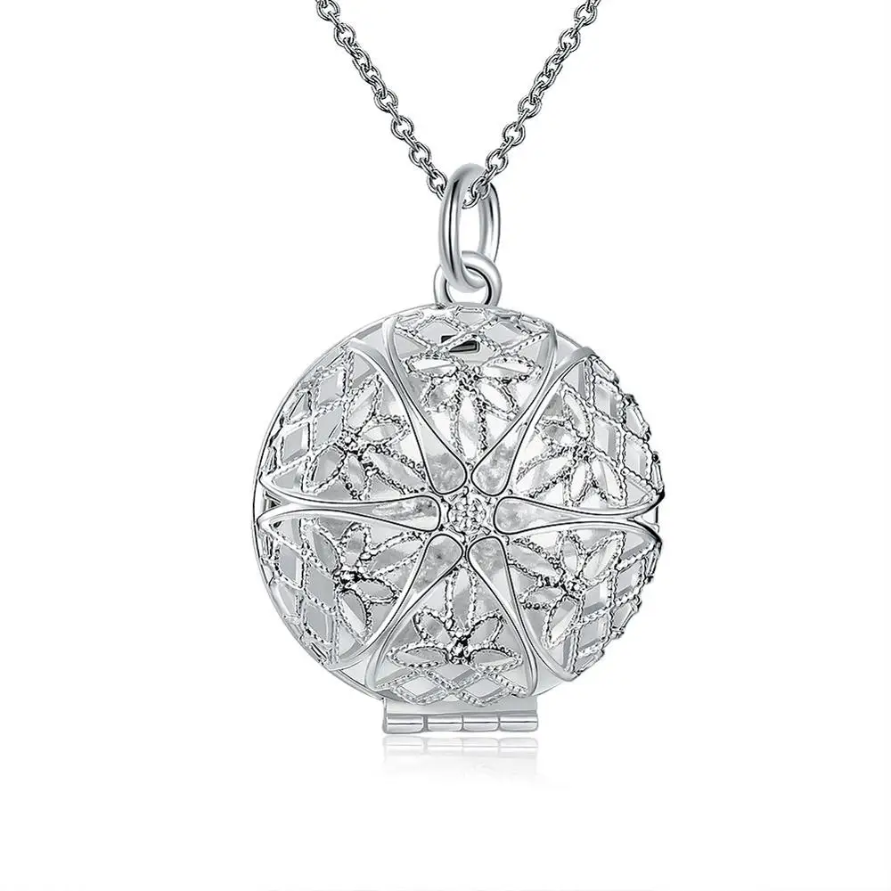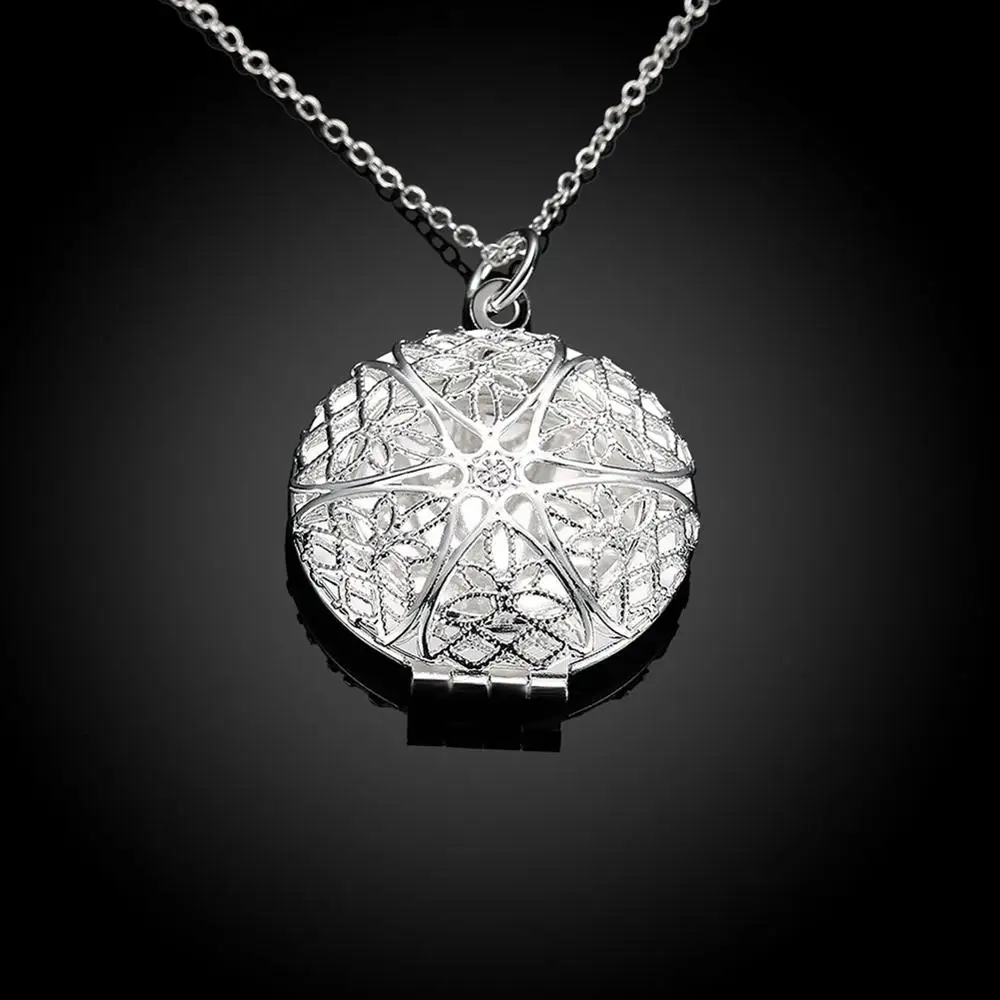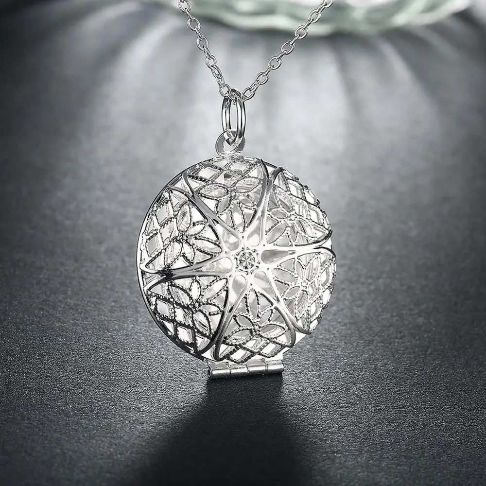 Полый цветок круглая коробка Подвеска фоторамка Посеребренная Медна...