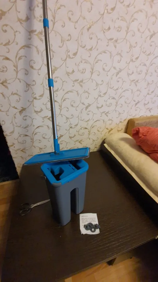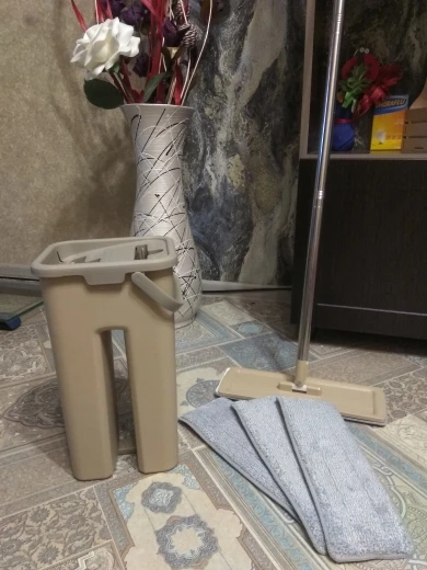Очень довольна шваброй!! Классная! Хоть и ёмкость ведра не большая, но плюс в том что тут же отжимаешь тряпочку, не мараешь руки. И очень понравилась сама тряпка, она хорошо собирает мусор не растасскивая по полу