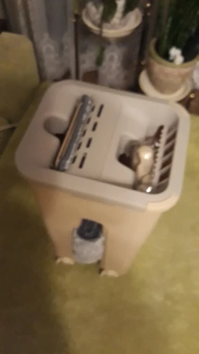 Крышка , которая сверху, где мыть и выжимать швабру- при вытягивании швабры открывается и снимается. Очень неудобно.