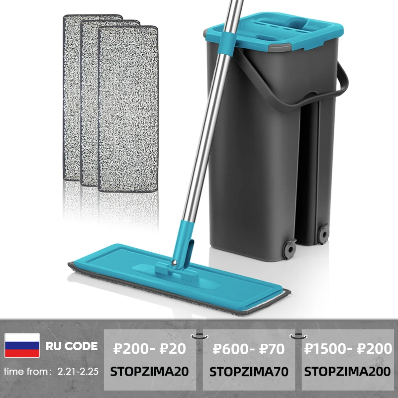 Плоская система швабры с ведром отделяет грязную и чистую воду моющиеся и многоразовые прокладки из микрофибры для дома, кухни, пола