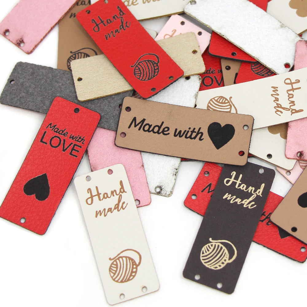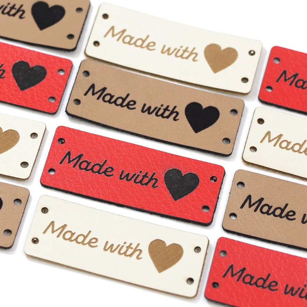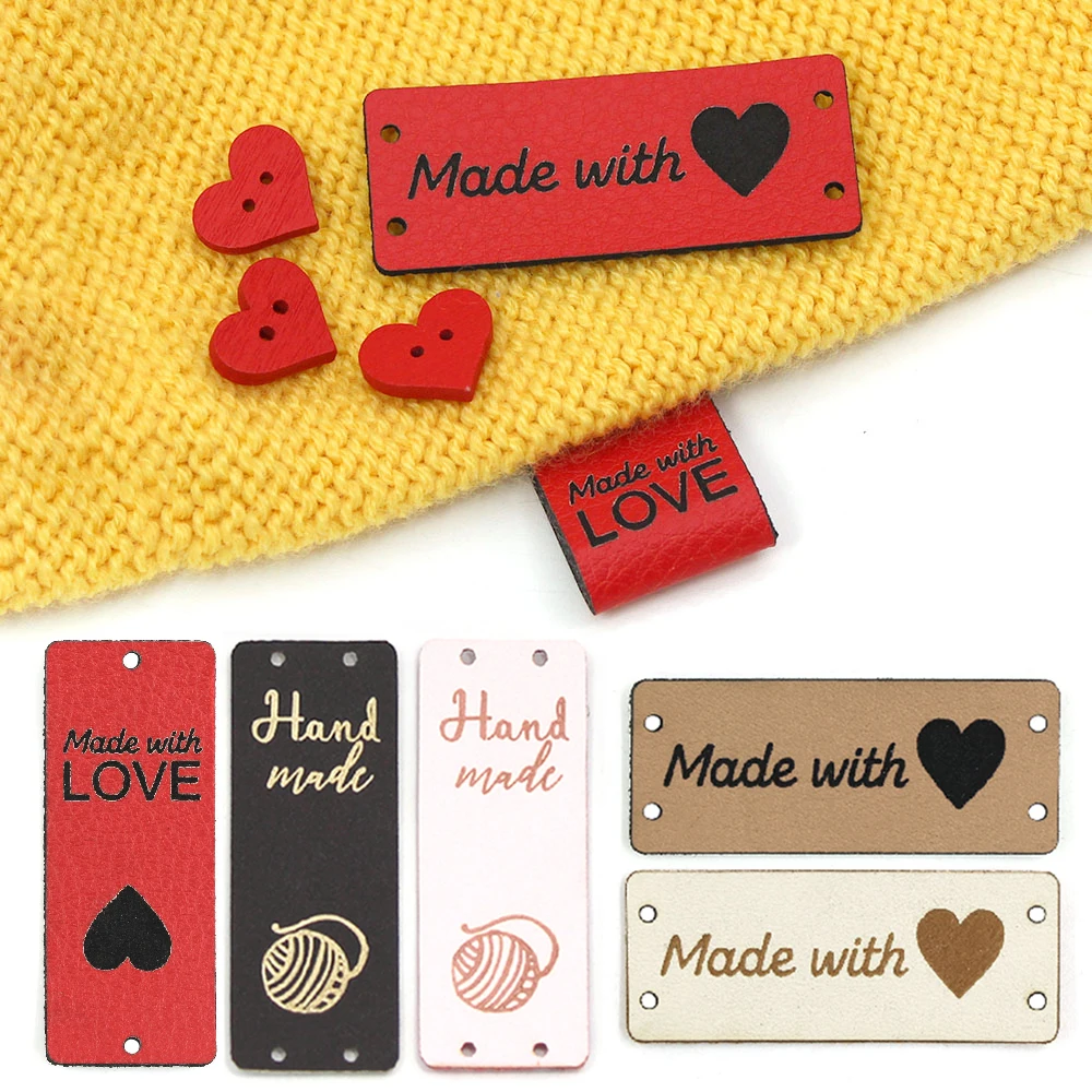 20 шт. кожаные этикетки ручной работы бирки для одежды "Сделано с любовью" Сердце бирки для вязания для шляпа и сумка шитья