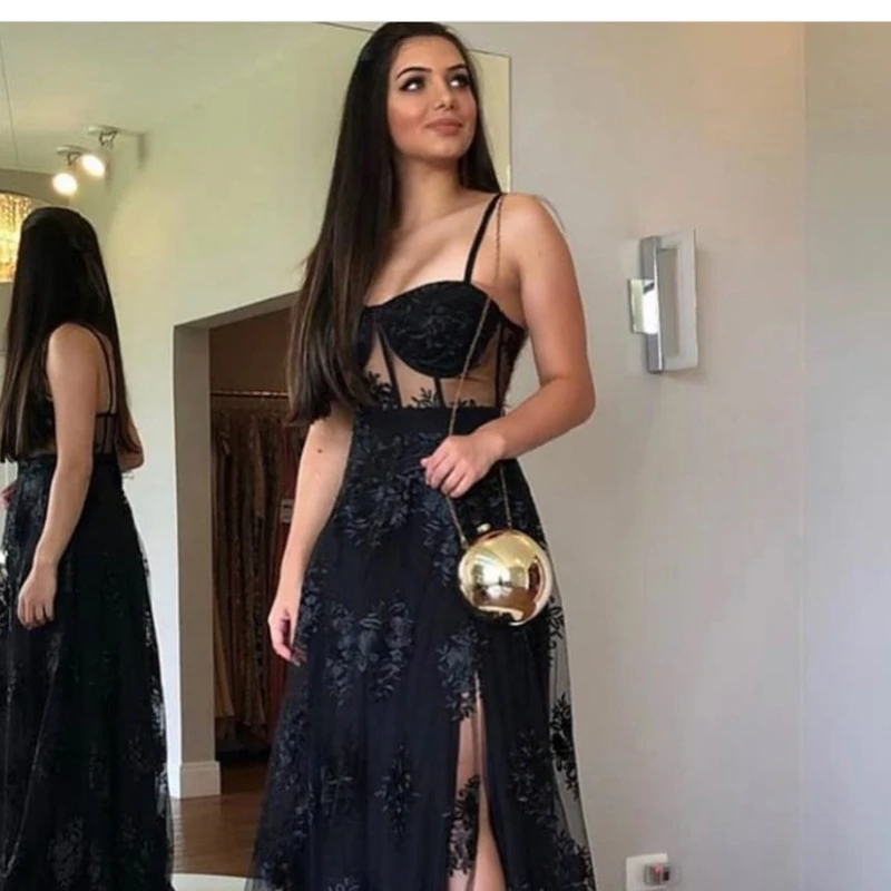 Черное вечернее платье трапециевидной формы до пола с Боковым Разрезом на тонких бретелях женское элегантное вечернее платье для выпускного вечера