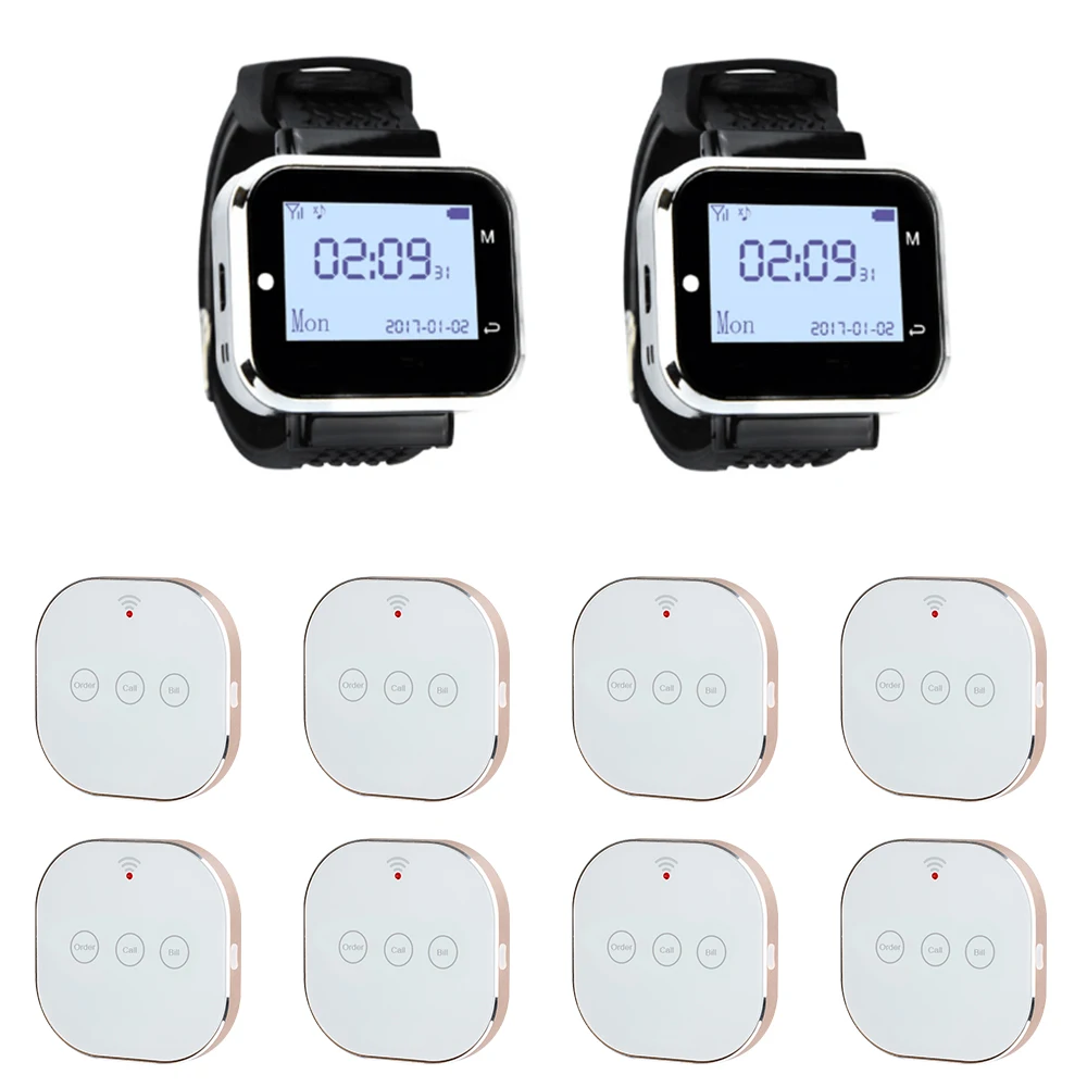 Во-первых, кнопки вызова вставляются или ставятся на стену или на стол, когда у гостей есть какие-либо услуги, он или она нажимает кнопки вызова, приемник (светодиодный экран или пейджер часов) получите сигнал с вибрацией или звуком, показывая номер таблицы, Тогда официант будет знать, какой стол будет подан.