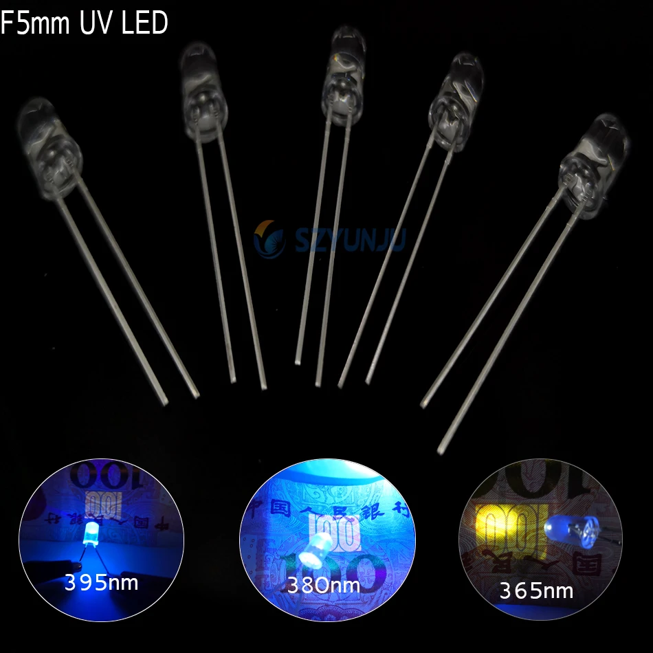 5 мм светодиодный Фиолетовый Ультрафиолетовый Ультраяркий 395нм 380нм 365нм УФ светодиодный диодный светильник с круглой прозрачной линзой 20 мА