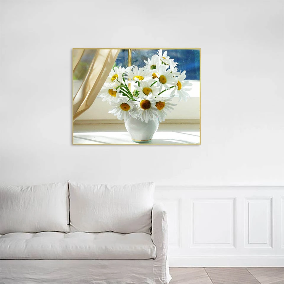 Алмазная картина Evershine с ромашками, полная выкладка, вышивка с цветами, картина из Стразы, мозаика, вышивка на стену