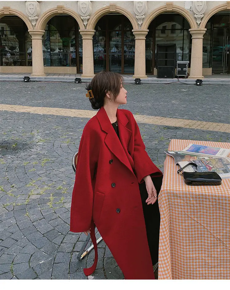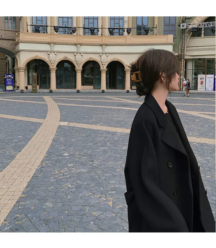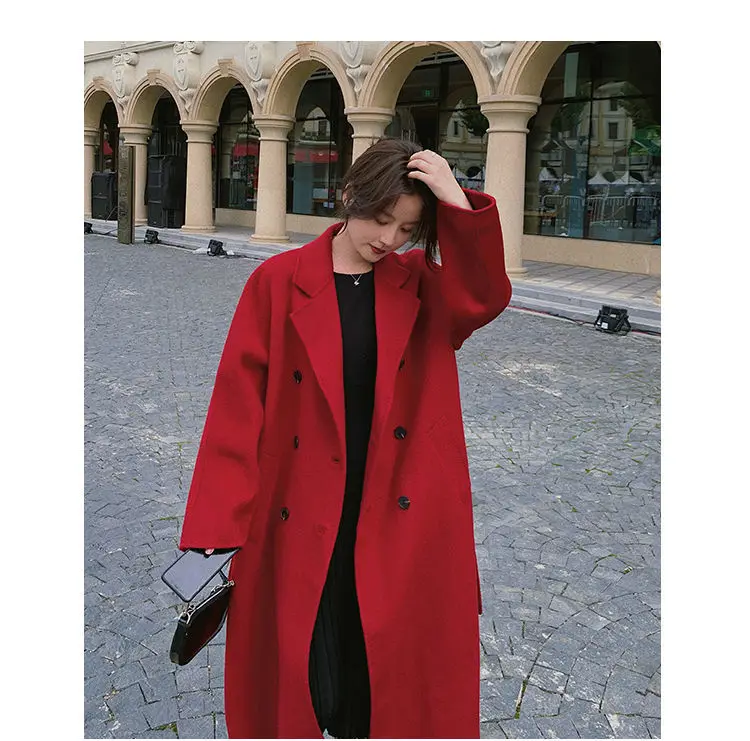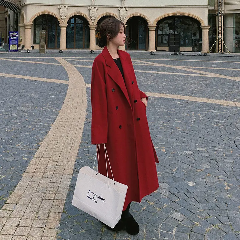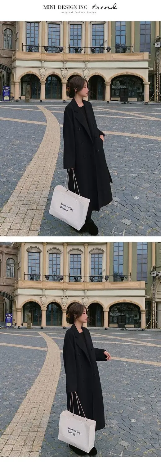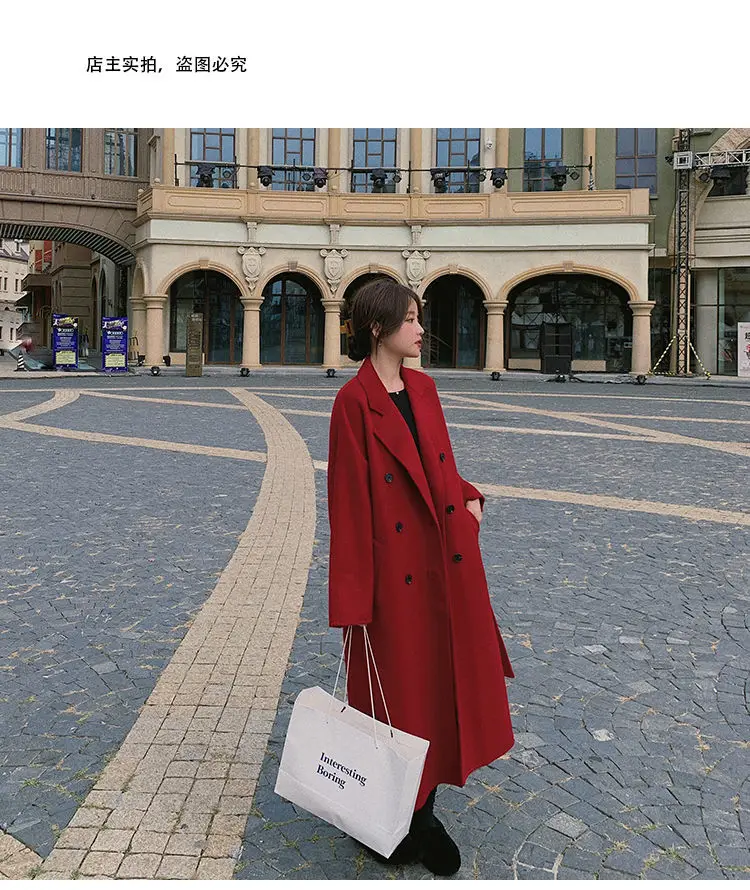 Осенне-зимнее однобортное шерстяное пальто, винтажные женские длинные корейские модные длинные куртки, Повседневная Уличная женская верхняя одежда