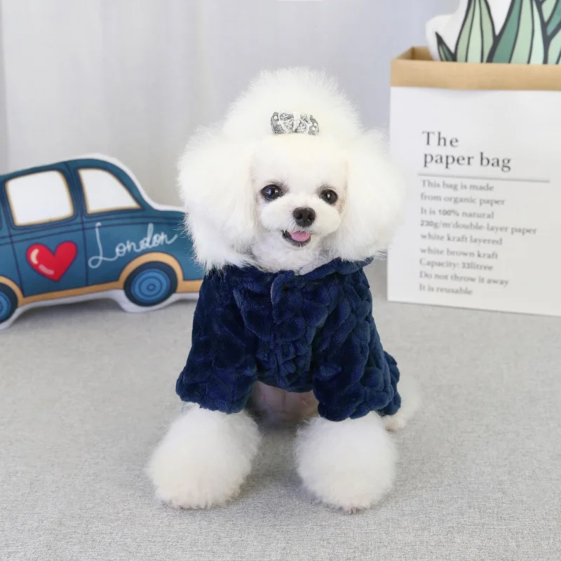 Одежда для собак, зимняя, теплая, с большим меховым воротником и четвероногим комбинезоном, утепленная одежда для чихуахуа, костюм для собак