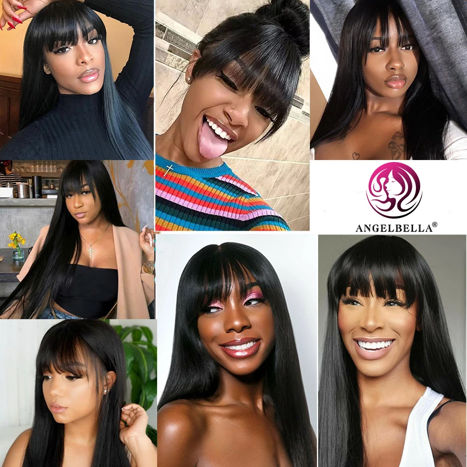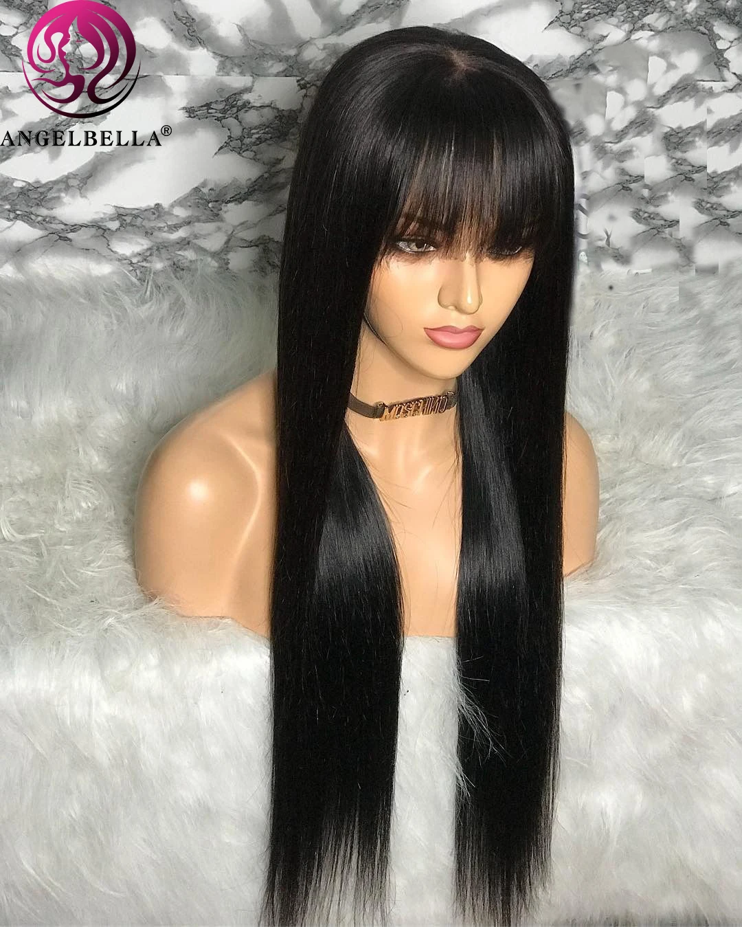 Angelbella 26 28 30 32 прямой длинный парик с челкой 100% бразильский парик из волос Remy мягкий натуральный цвет парики из человеческих волос для женщин