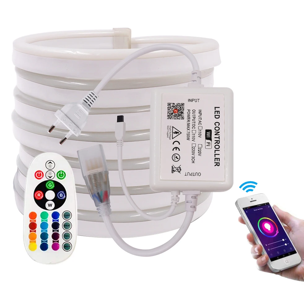 Неоновая лента с Wi-Fi, RGB, 24 кнопки, пульт дистанционного управления, 220 В, 110 В, гибкая светодиодная неоновая лента, наружная Праздничная декоративная лампа с вилкой EU, US, UK, AU