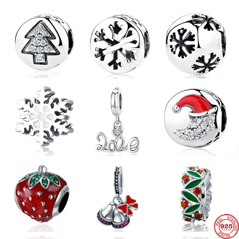 Новый Рождественский подарок шапка в виде красной клубники самодельные бусины подходят для оригинальных шармов Pandora серебряный браслет 925 для девочек модные ювелирные изделия