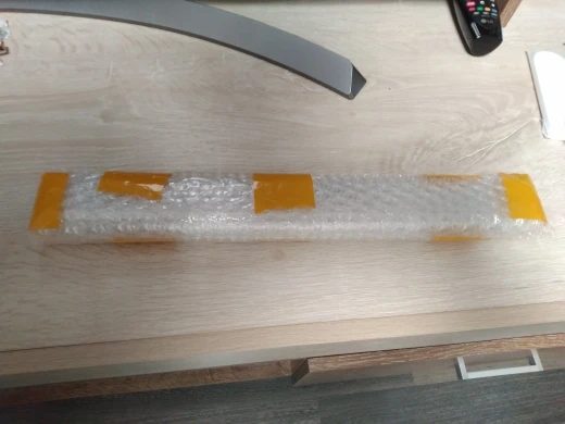 три недели в пути, пришло вместе с другими посылками в одной упаковке. всё как в описании, алюминиевая основа со скотчем.