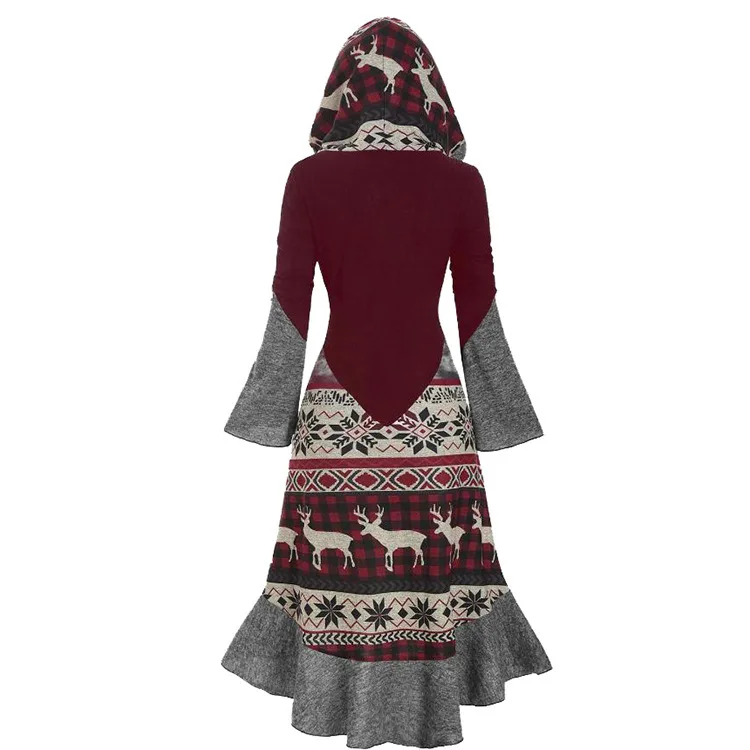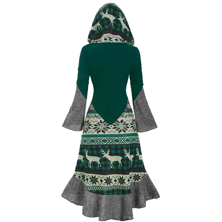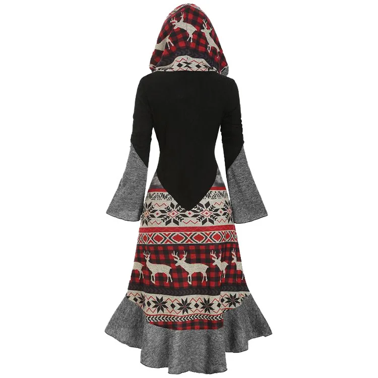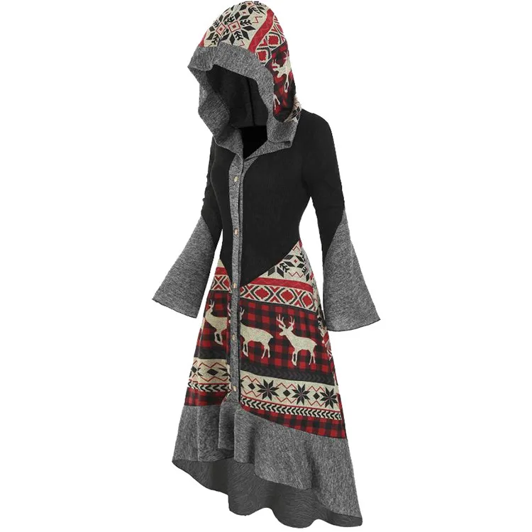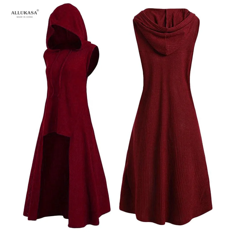 Фантастическое Новое Женское Платье на Хэллоуин с капюшоном в готическом стиле Wicca, повседневное свободное эластичное однотонное платье большого размера с капюшоном