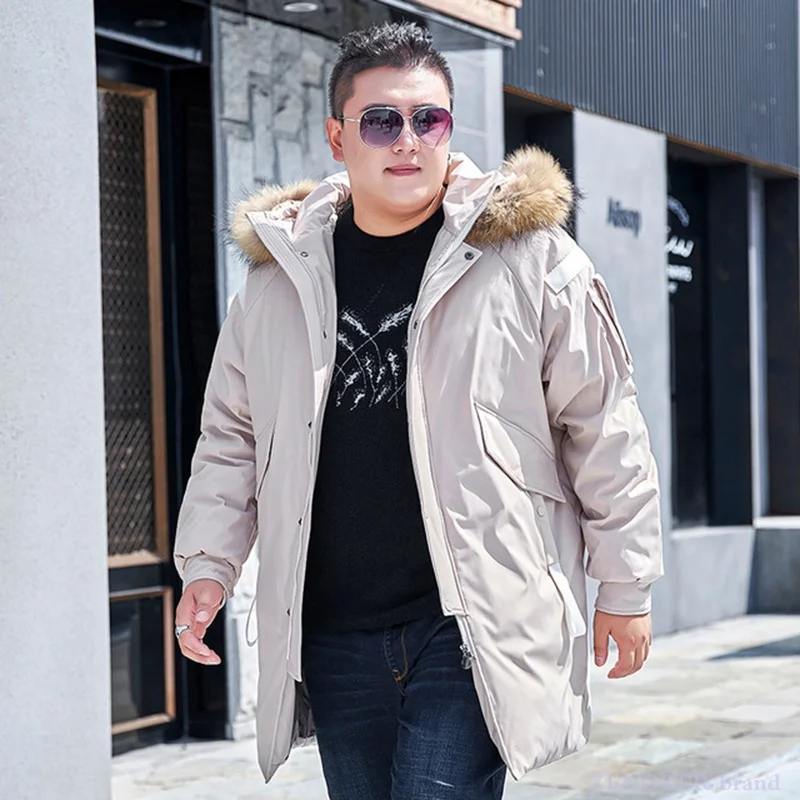 Мужская куртка-пуховик средней длины с большим меховым воротником, очень большое модное толстое теплое пальто 170 кг 10x