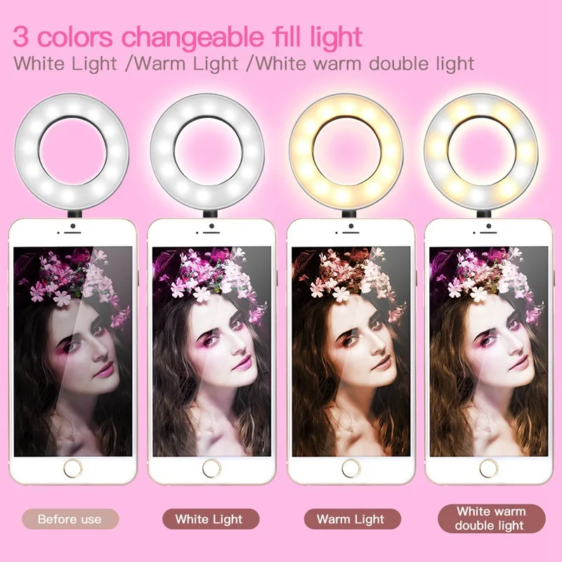 3-цветный кольцевой светильник для селфи с держателем для сотового ...