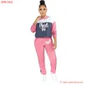 Женский спортивный костюм из 2 предметов, спортивные штаны и толстовка с длинным рукавом, розовый топ с капюшоном и буквенным принтом, длинные штаны, карманы, повседневный комплект из двух предметов USD 16,95/Шт.