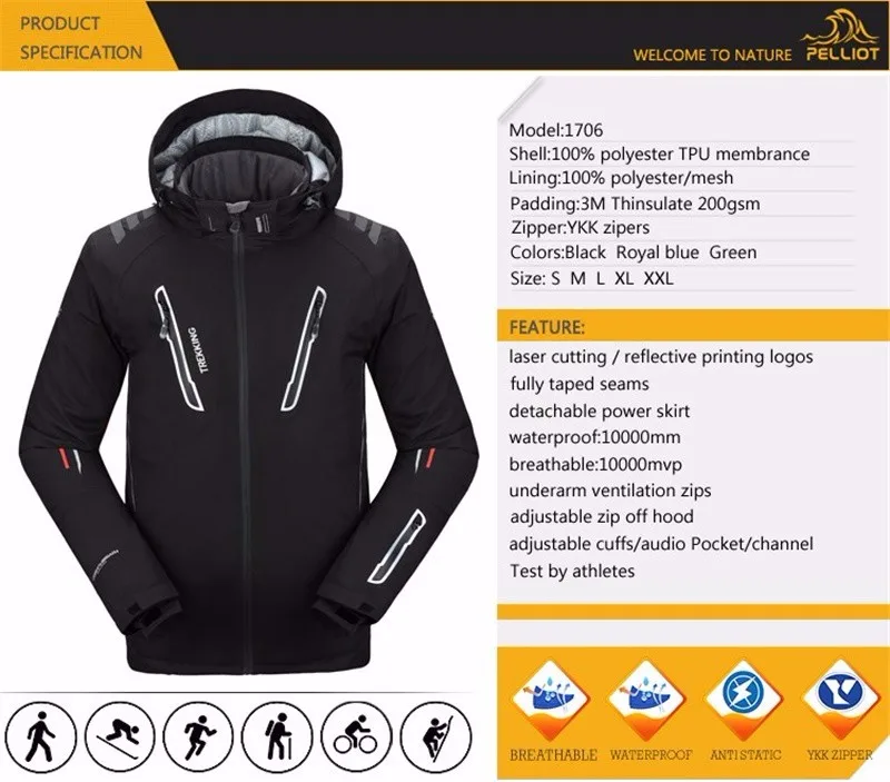 Мужской лыжный костюм для сноуборда, Водонепроницаемая дышащая куртка для женщин