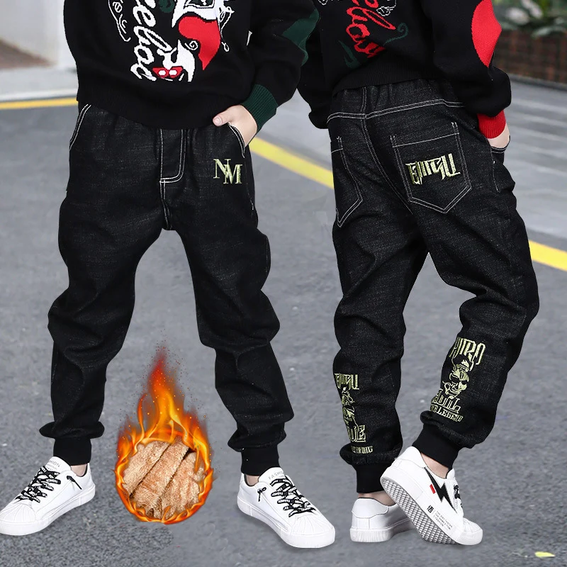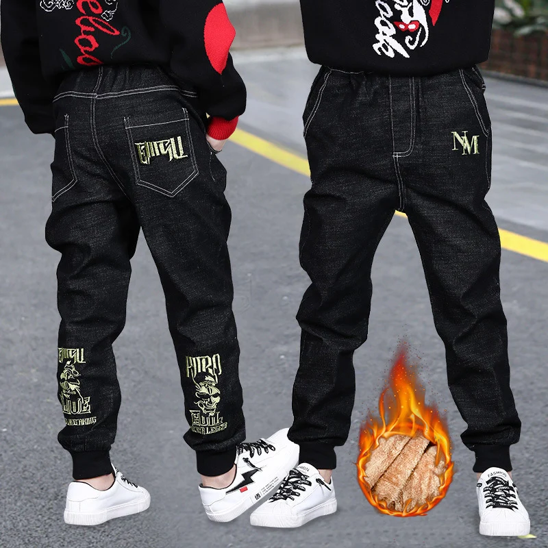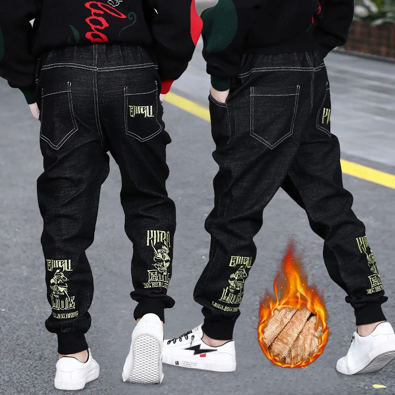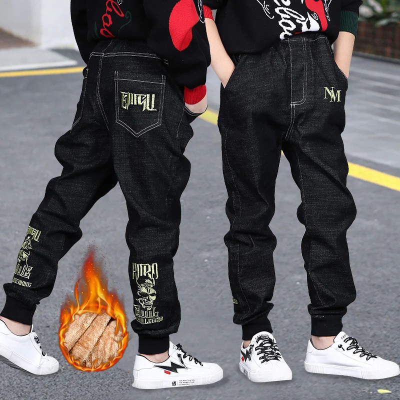 Джинсовые штаны для мальчиков от 4 до 14 лет теплые зимние детские обтягивающие джинсовые брюки плотная Шерстяная Одежда с надписями для мальчиков-подростков, новая осенняя одежда