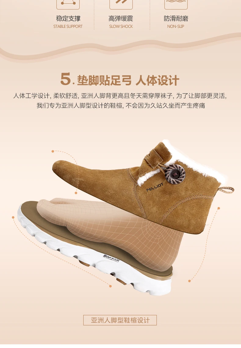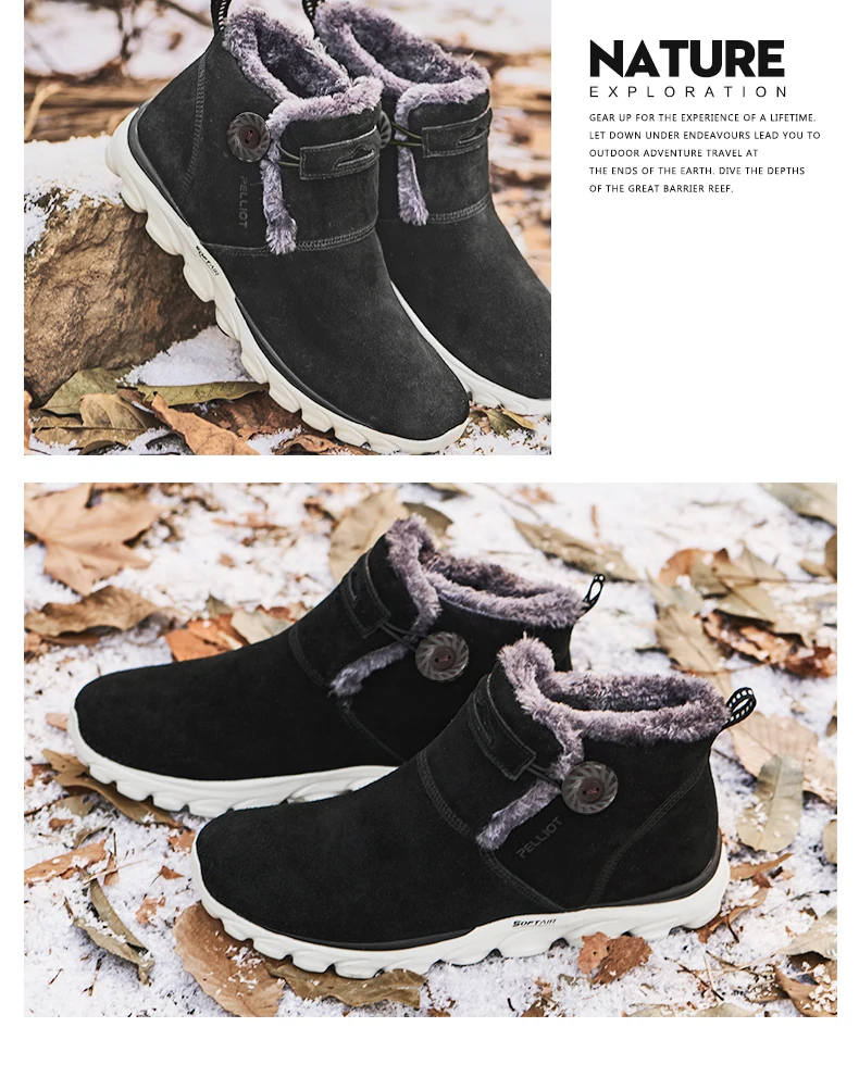 PelliotМужская обувь для пеших прогулок; Зимние ботинки; Нескользящие ботинки с плюшевой подкладкой; Прогулочные ботинки средней высоты для мужчин; Треккинговые ботинки с мехом