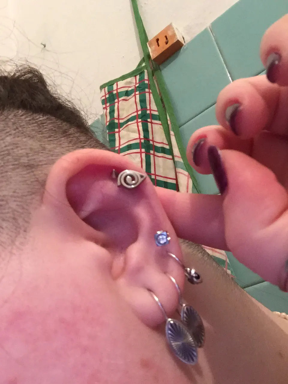 Слишком большой, чтобы поместиться в мой пирсинг в верхней части уха, просто подходит для сережек