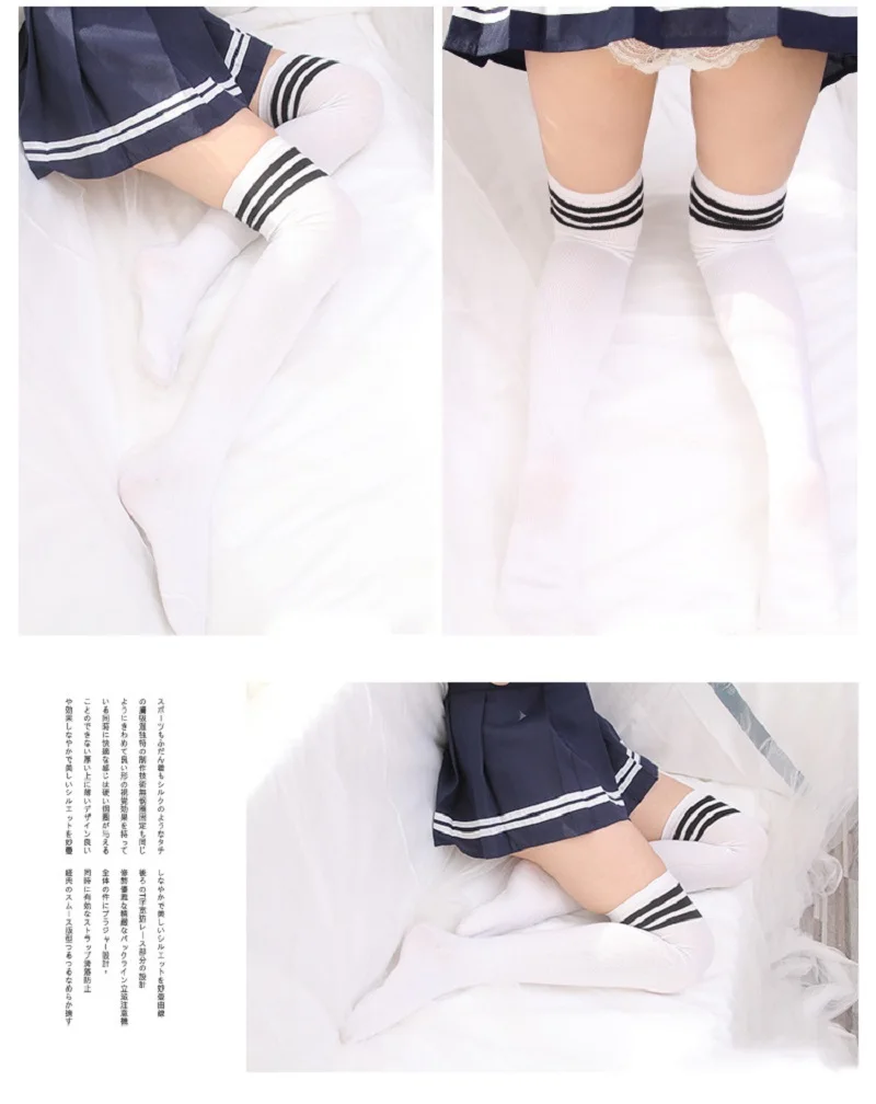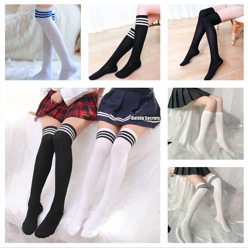 Гольфы для студентов, Осенние Хлопковые гольфы для трёх баров, Высокие гольфы, женские белые Танцевальные чулки для выступлений