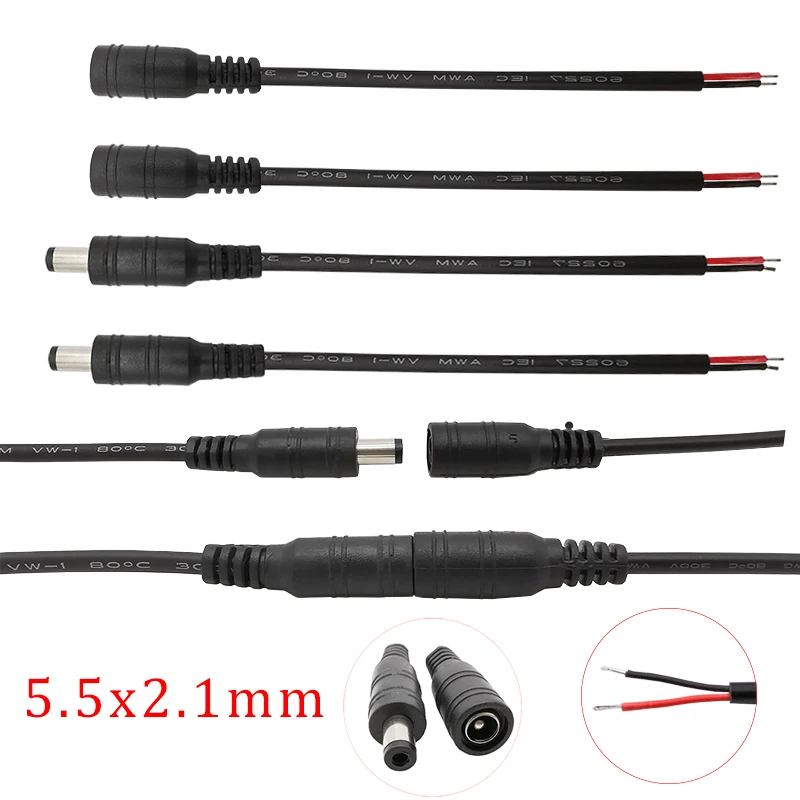 UesageDC 2.1mm x 5.5mm Wire Power Pigtails Adapter Barrel Plug Socket Cables