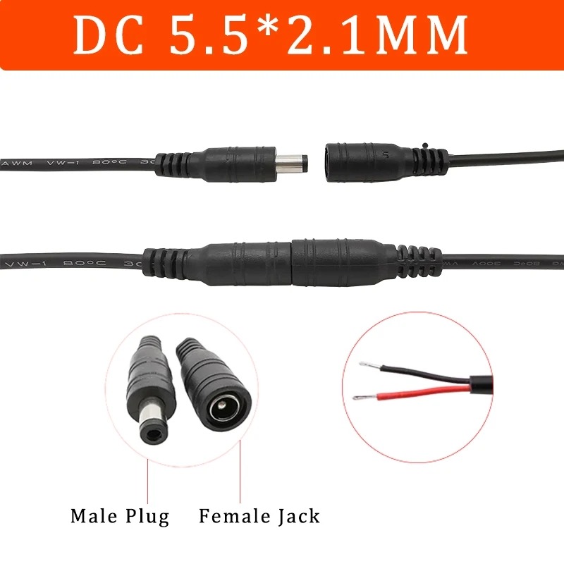 510 пар, черный, 12 В, 5,5x2,1 мм, источник питания постоянного тока, кабель с косичками, штекер, разъем, медный провод, штекер, разъем для камеры видеонаблюдения, светодиодный свет