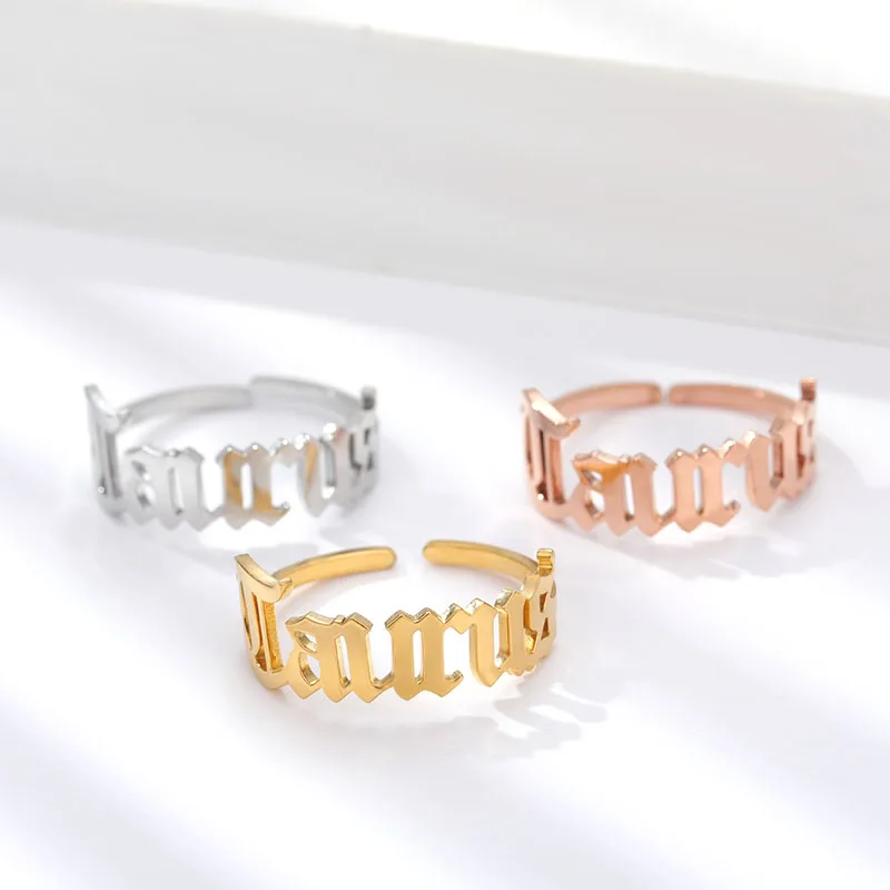 Регулируемые 12 Созвездие кольца с буквами для женщин из нержавеюще...