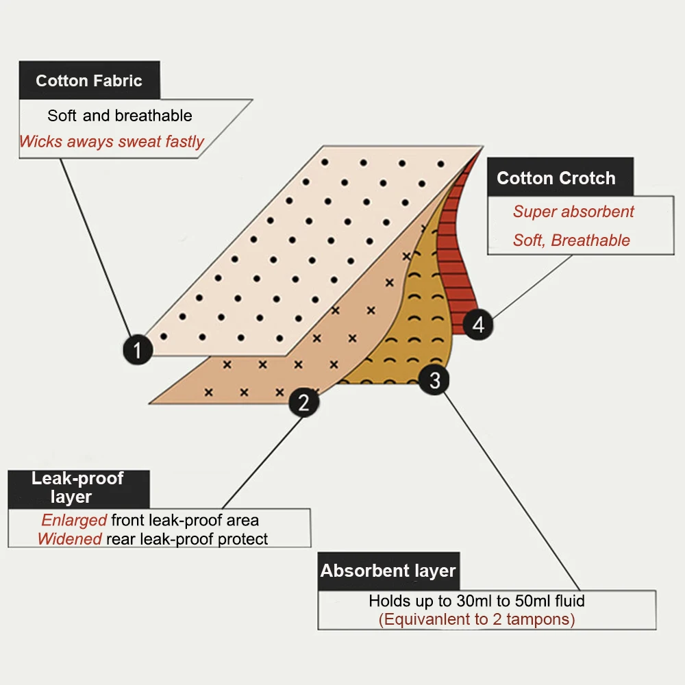 4 слоя тампон-свободные хлопковые менструальные трусики